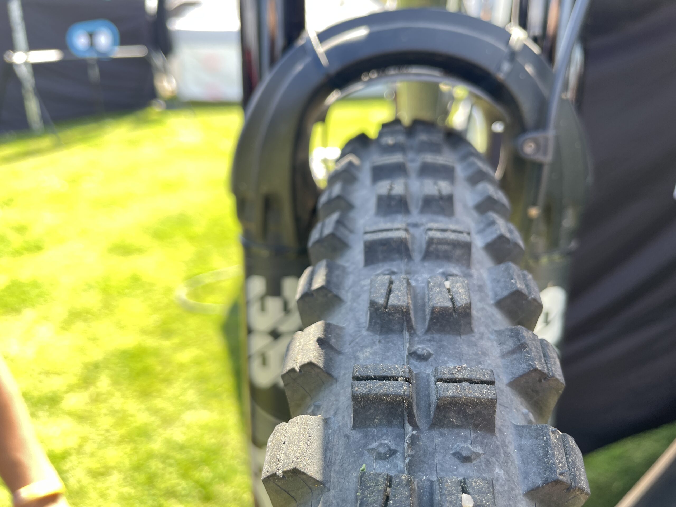 This is a prototype tyre from WTB that Fergus Ryan is currently running front and rear for his races at Sea Otter. It’s made with a new compound which is apparently even stickier than their current High Grip compound. And the new casing is so tough that Fergus isn’t running inserts – there’s loads of side wall support without them, without getting too hard and pingy. Interesting… Benji will have to wait until they’re released, which is some time later this year, to get testing them. Apparently there’s an XC prototype out there somewhere too, we’ll see if we can find it!