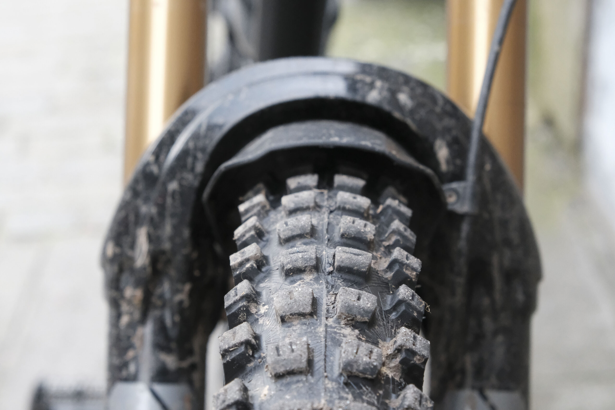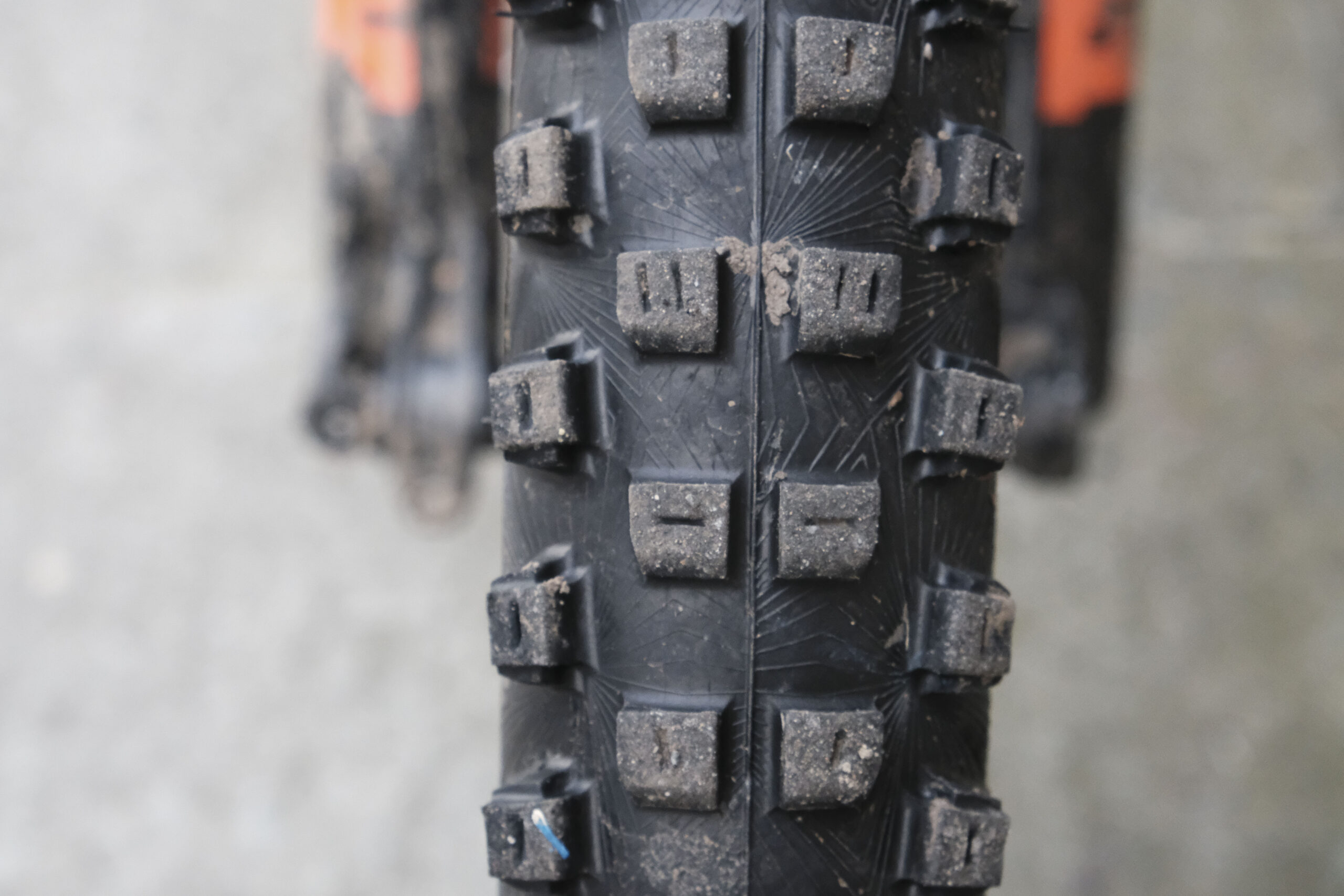 Frustratingly, the Enduro casing Argotal is only available in Soft compound. Which just isn’t quite sticky enough for real filth (once you factor in rocks and roots). The Argotal tread itself is great. Amazing in fact. Loads of mechanical traction and an impressive lack of clogging-up. But it’s the Supersoft compound that is missed when you don’t have it (inferior cornering, less calm, less traction on root/rock). Which means you need to carry around the extra casing weight of the DH Argotal.