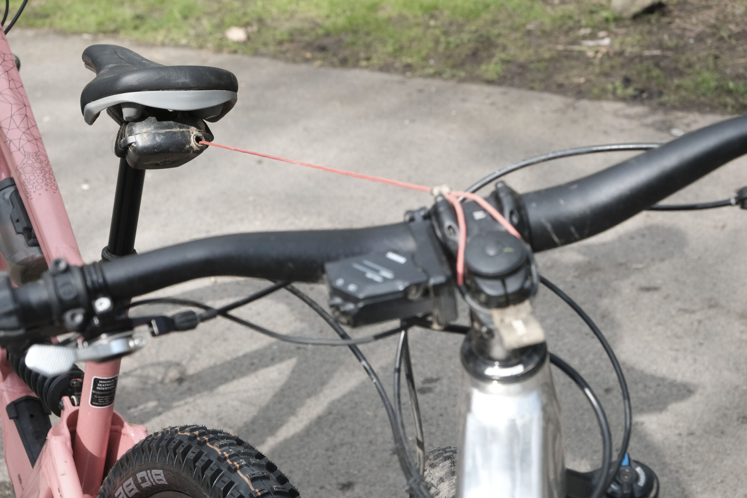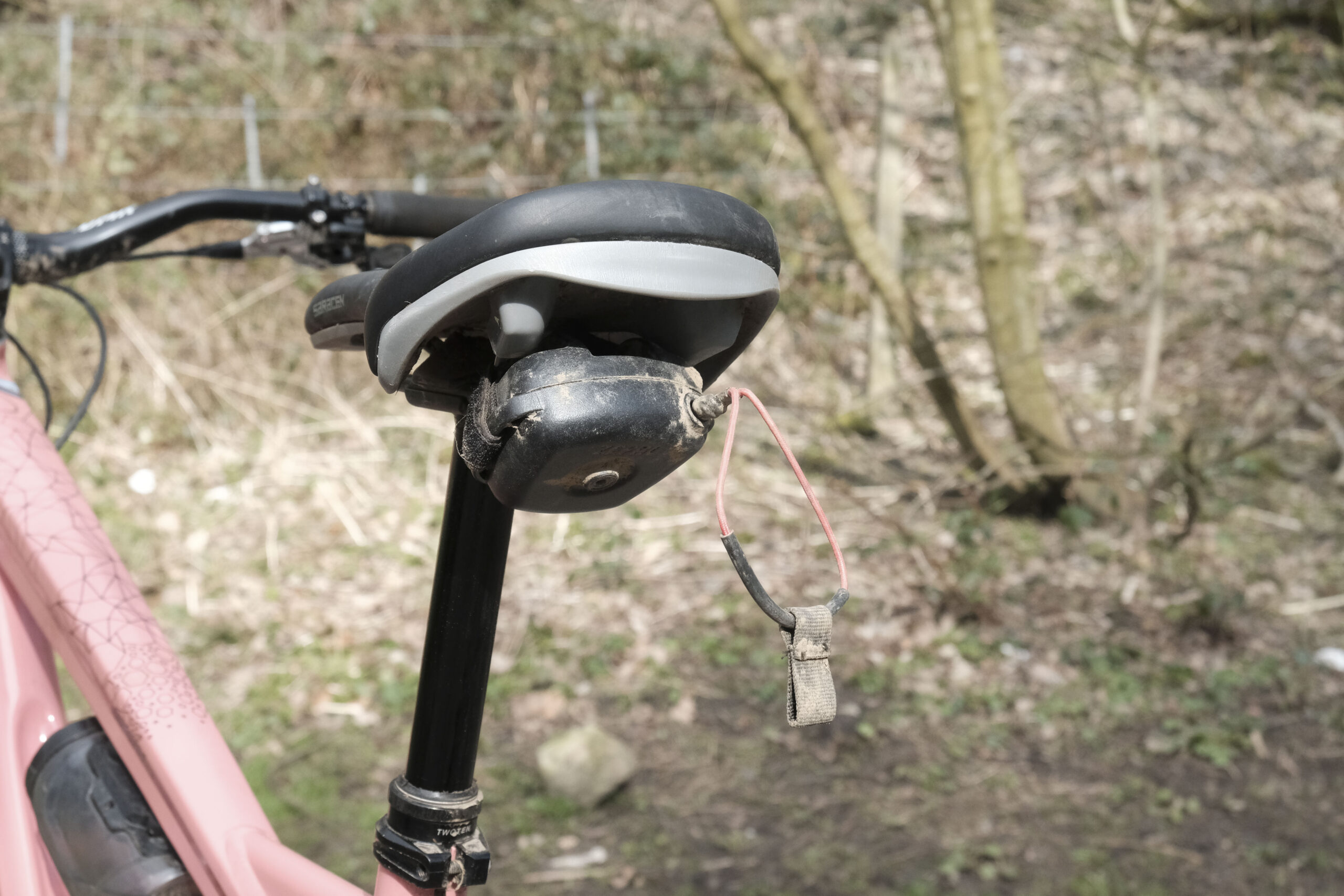 While mounting the unit to your saddle rails is a bit faffy – essentially threading a toe-strap through some slots and over/under rails – once it’s on, this is by far the least faffy towing system I’ve used. Pull the loop, stick it over your kid’s stem (it anchors between the two rear bolts of the stem steerer clamp), do the towing, remove loop from kid’s stem, and let it zip back into the unit. With a (cooperative) child, it’s even possible to attach/tow/remove on-the-fly.