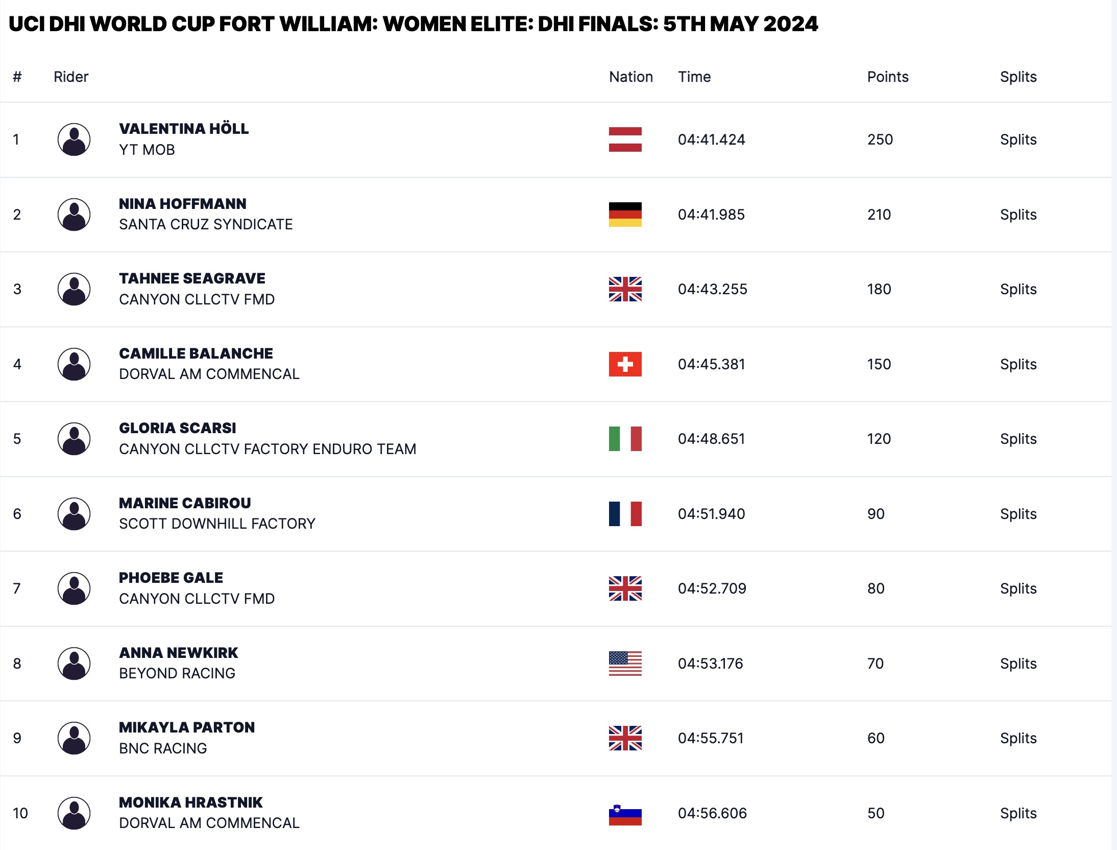 And then there was Höll. The last rider on the hill, she was a second back in the second split on the mountain, but managed to pull it back in the fast, flowing bottom half of the course to win by 0.5 seconds.