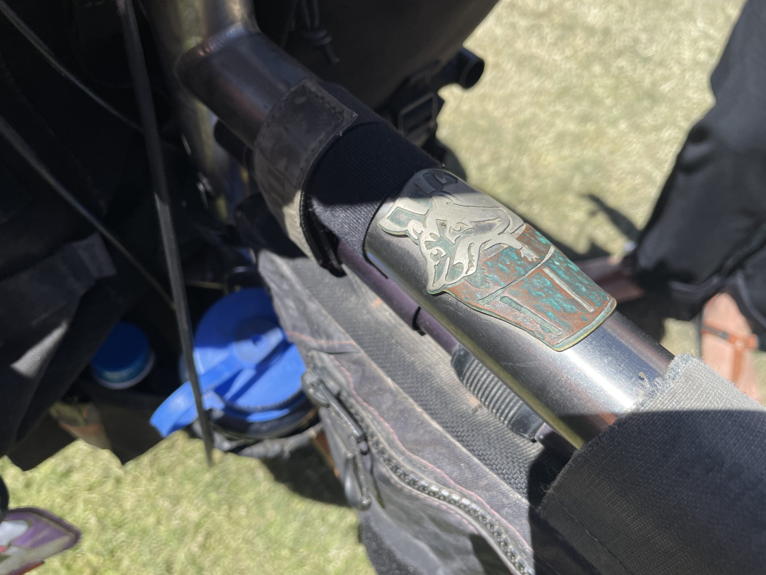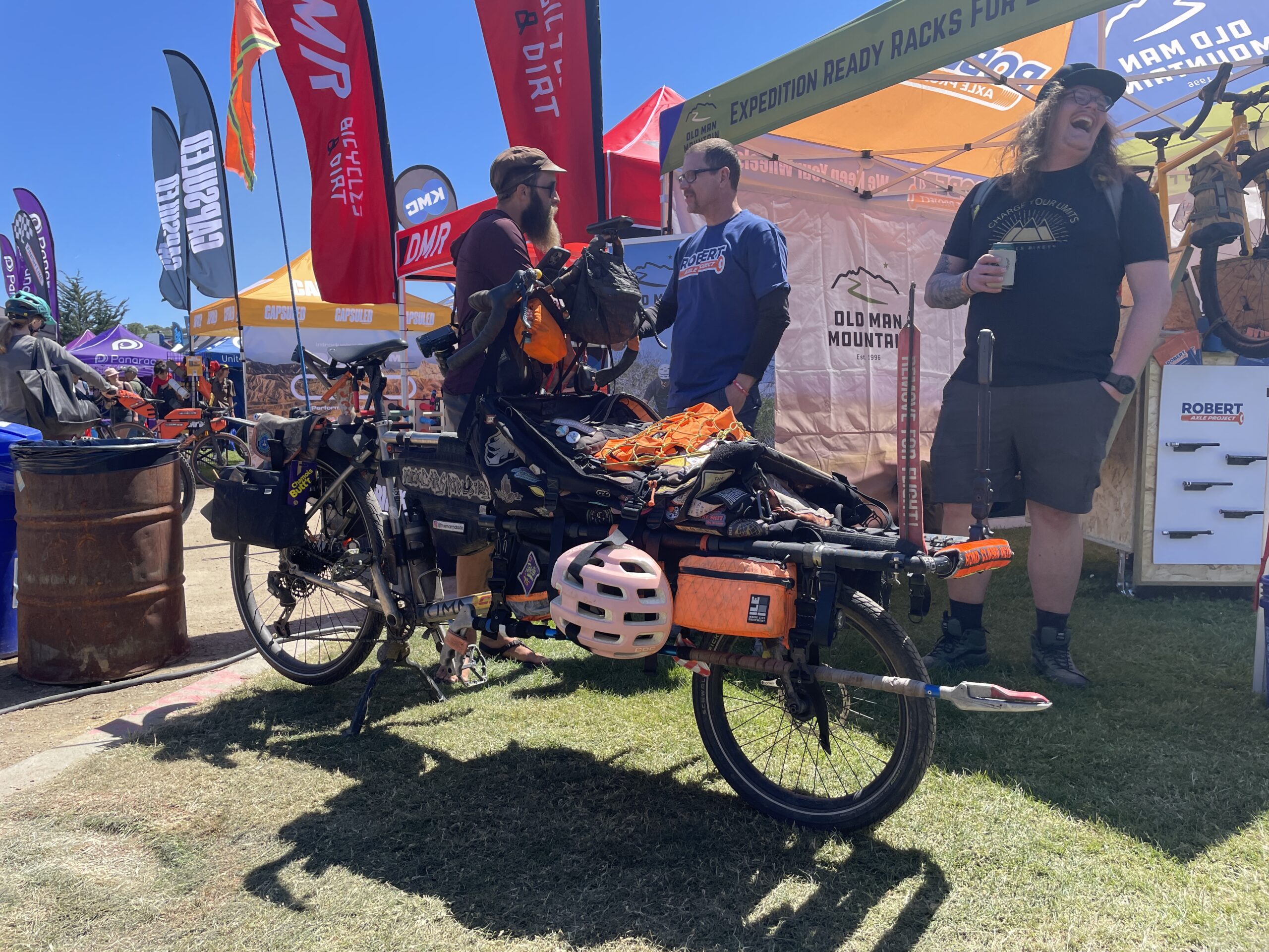 One of the joys (for me, anyway) of the Sea Otter Classic is the unusual bikes that people turn up with, and the stories behind them. I clocked this heavily stickered and accessorised cargo bike and had to find out a bit more about what it was all about.
