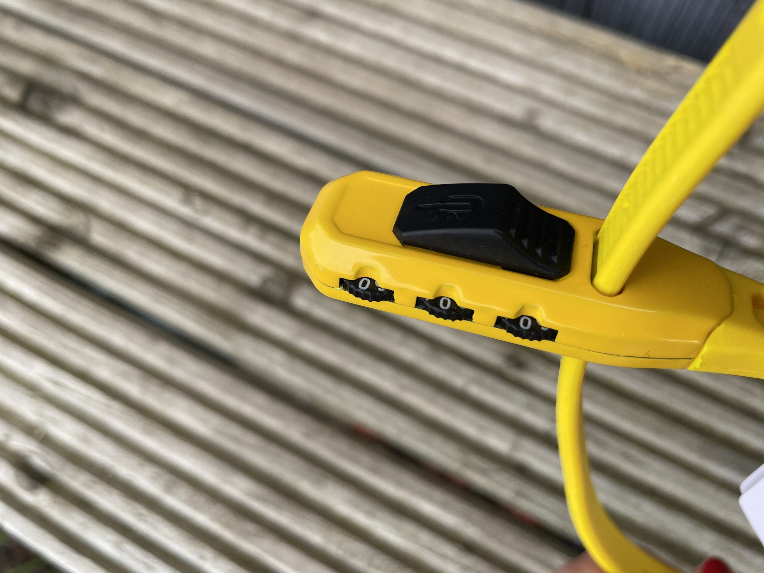 A combination lock version of the Z-Lok. It’s the sort of thing that’s useful for keeping your helmet with your bike – a deterrent rather than an all out security solution for a bike.
