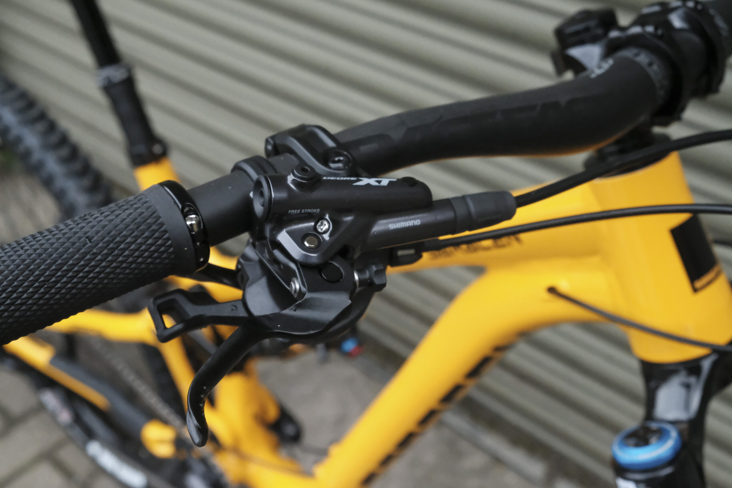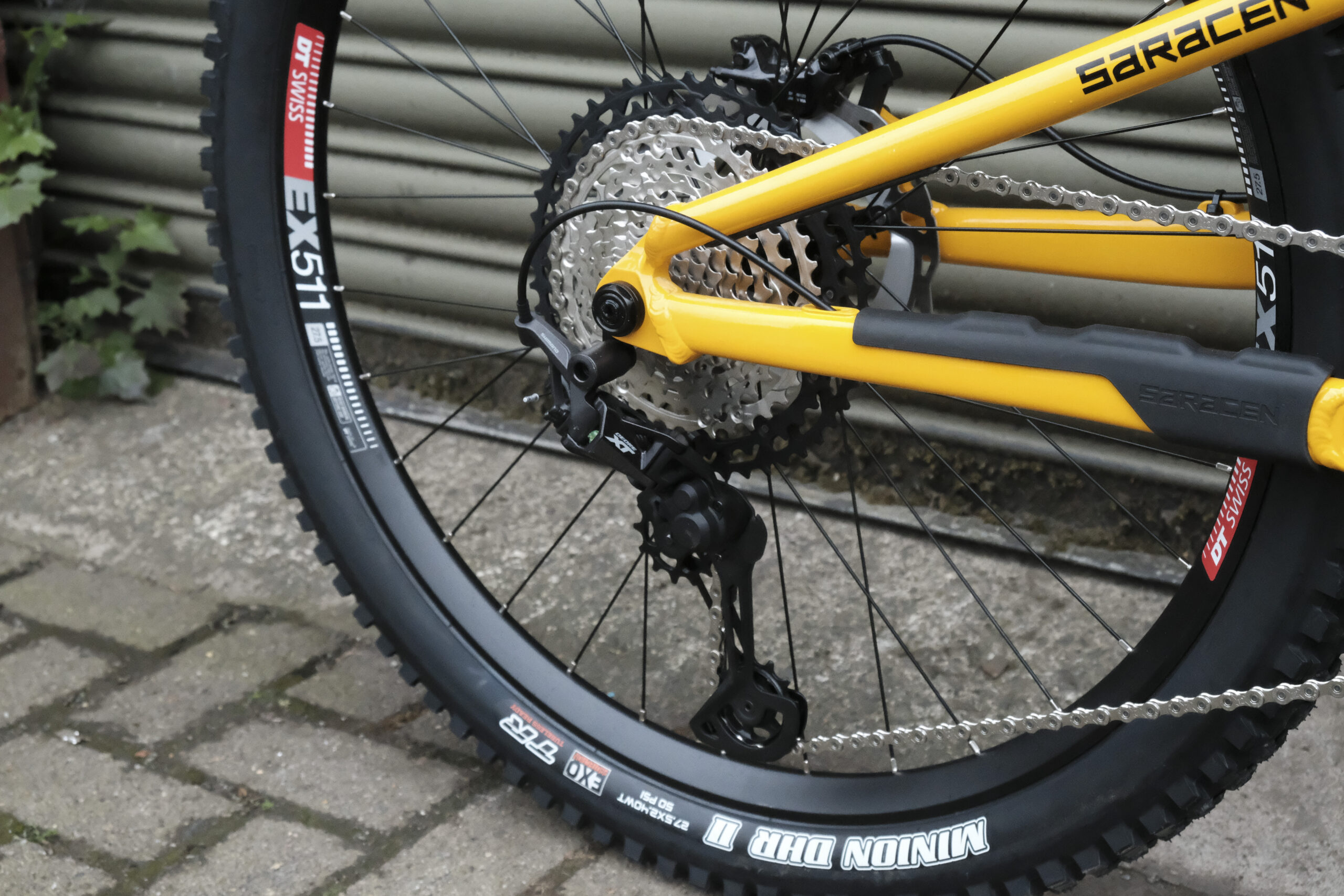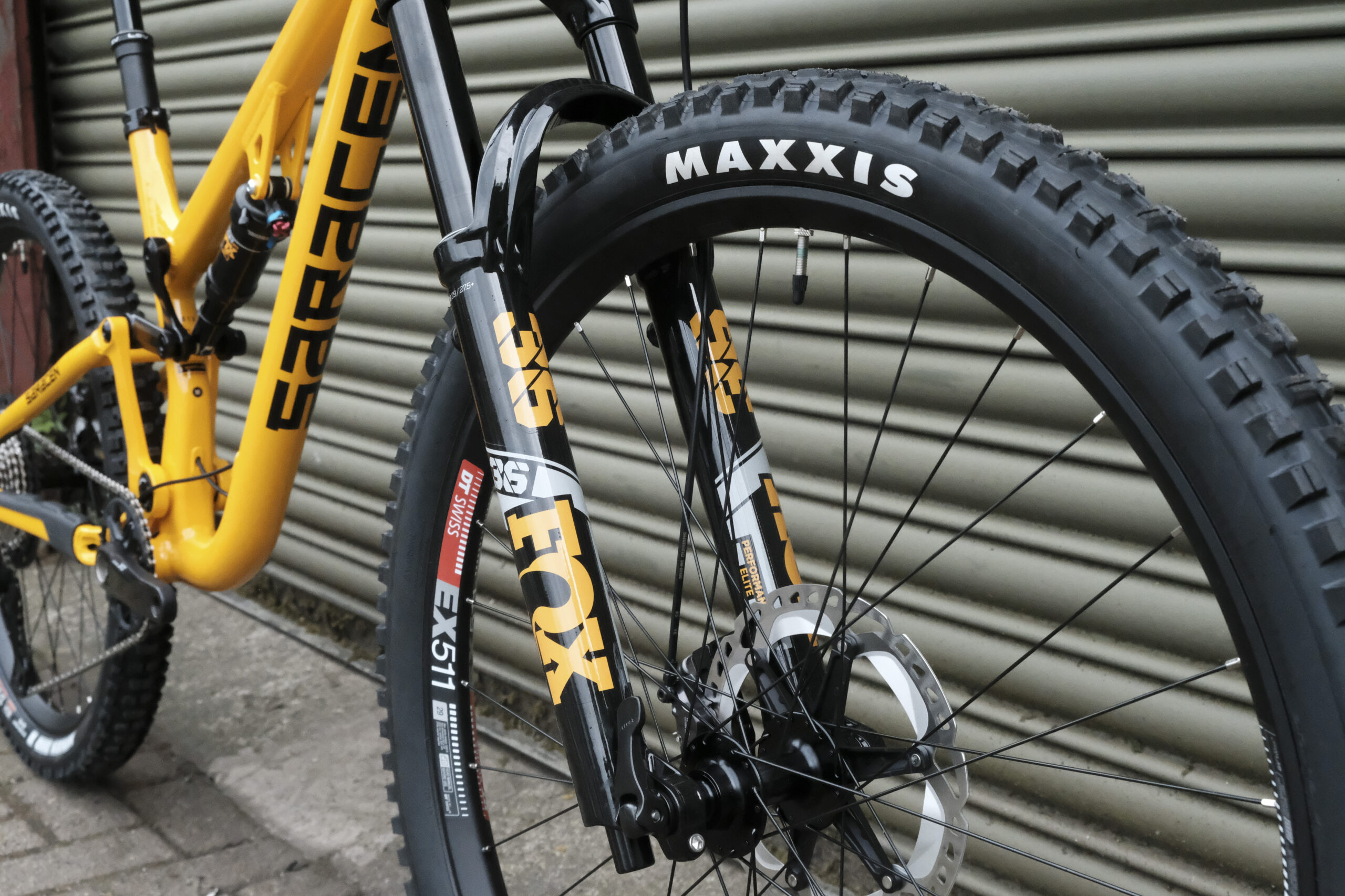 Another Ariel from Saracen that looks the absolute bee’s knees. Literally. This is one of those Normal Mountain Bikes that we used to hear about back in the day. Aluminium. 130mm rear travel via Saracen’s own TRL linkage driven single pivot. 140mm travel Fox 36 up front. Shimano XT everywhere. DT Swiss EX511 rims. 170mm KS dropper post. 450mm stem. 780mm bars. What isn’t so very back-in-the-day is the wheel size and the geometry. This is a mullet. The Small and Medium (this bike) Ariel 30 models come as mullet bikes. The Large and X-Large models are full 29ers. Geometry-cally speaking this Medium has 410mm seat tube, 480mm reach (oof! yes!), 65° head angle, 76.5° seat angle, 440mm chain stays and 30mm of BB drop.