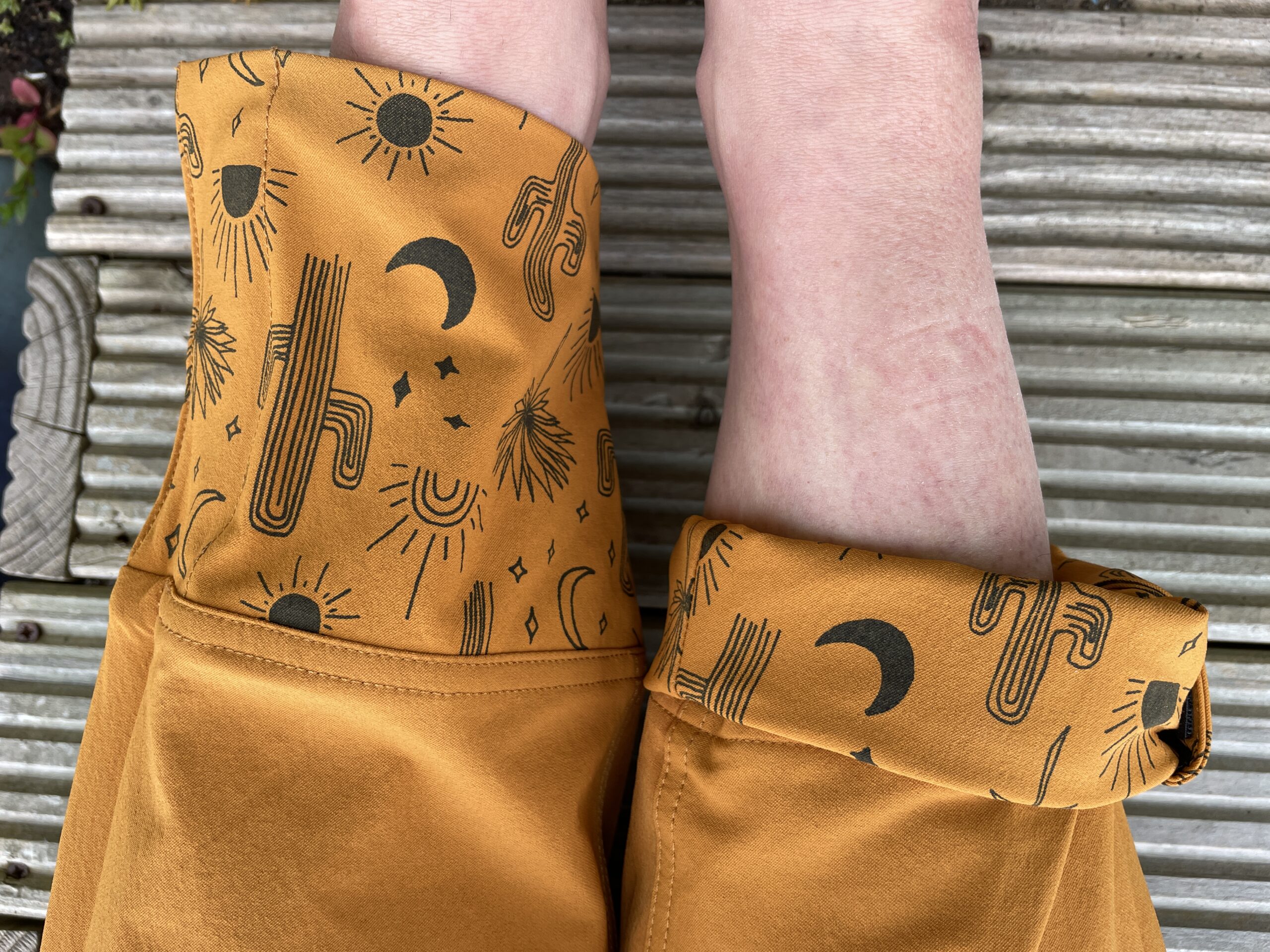 Hannah was excited to get these because a) they have cacti on them and b) they’re the dragon’s blood of the bike world: women’s riding trousers that are actually long. She was so excited to discover that this US size 10 pants fitted perfectly, that she’d had them on all day before she discovered exciting thing number c) the cactus cuffs are double sided, with the inside fabric upside down, so you can roll up the cuffs and turn them into capris if you’re tall, or normal length pants if they’re a bit long. Her mind has been blown. She may never take them off. Easily the most excited she’s been about trousers in years.