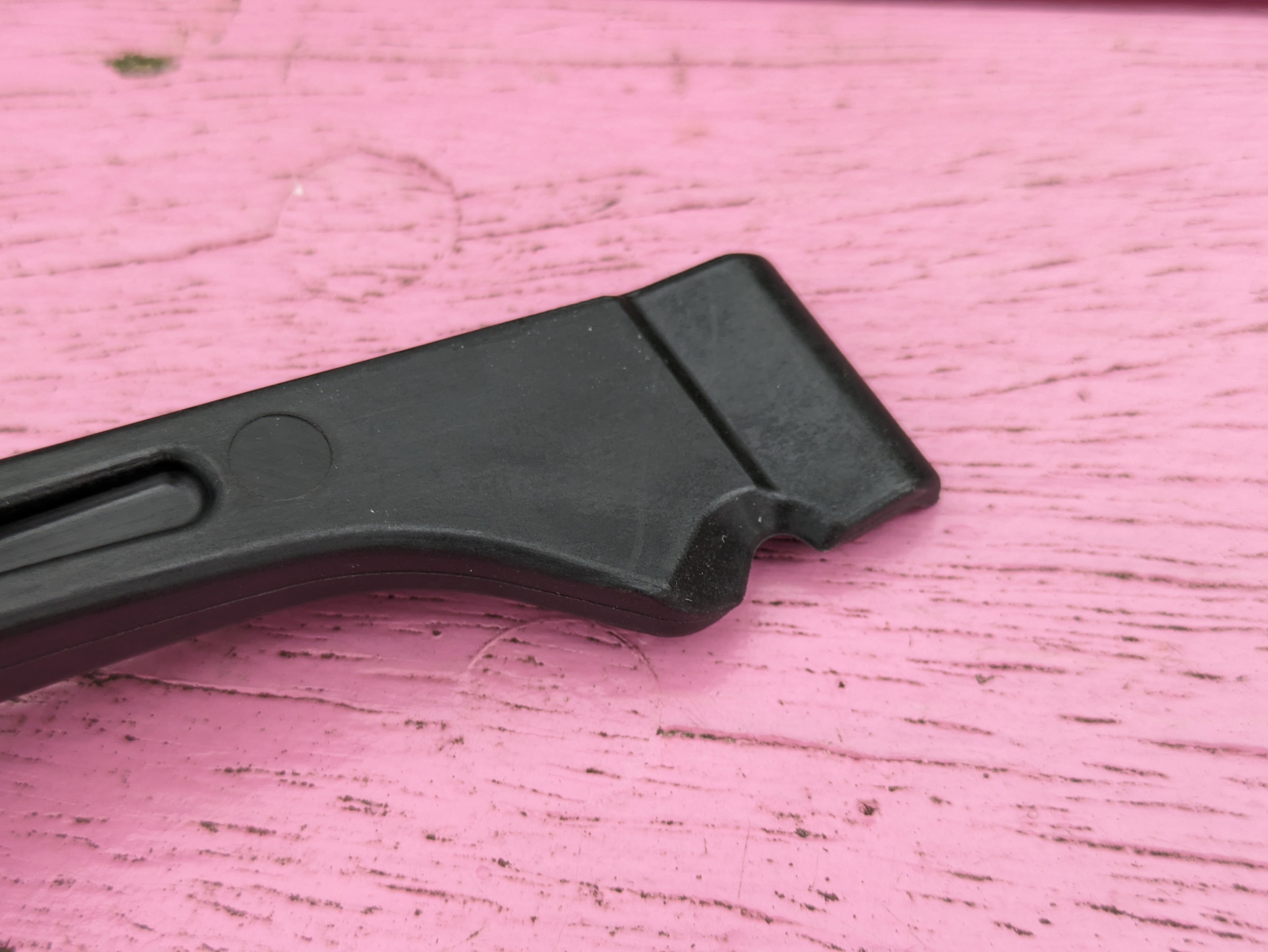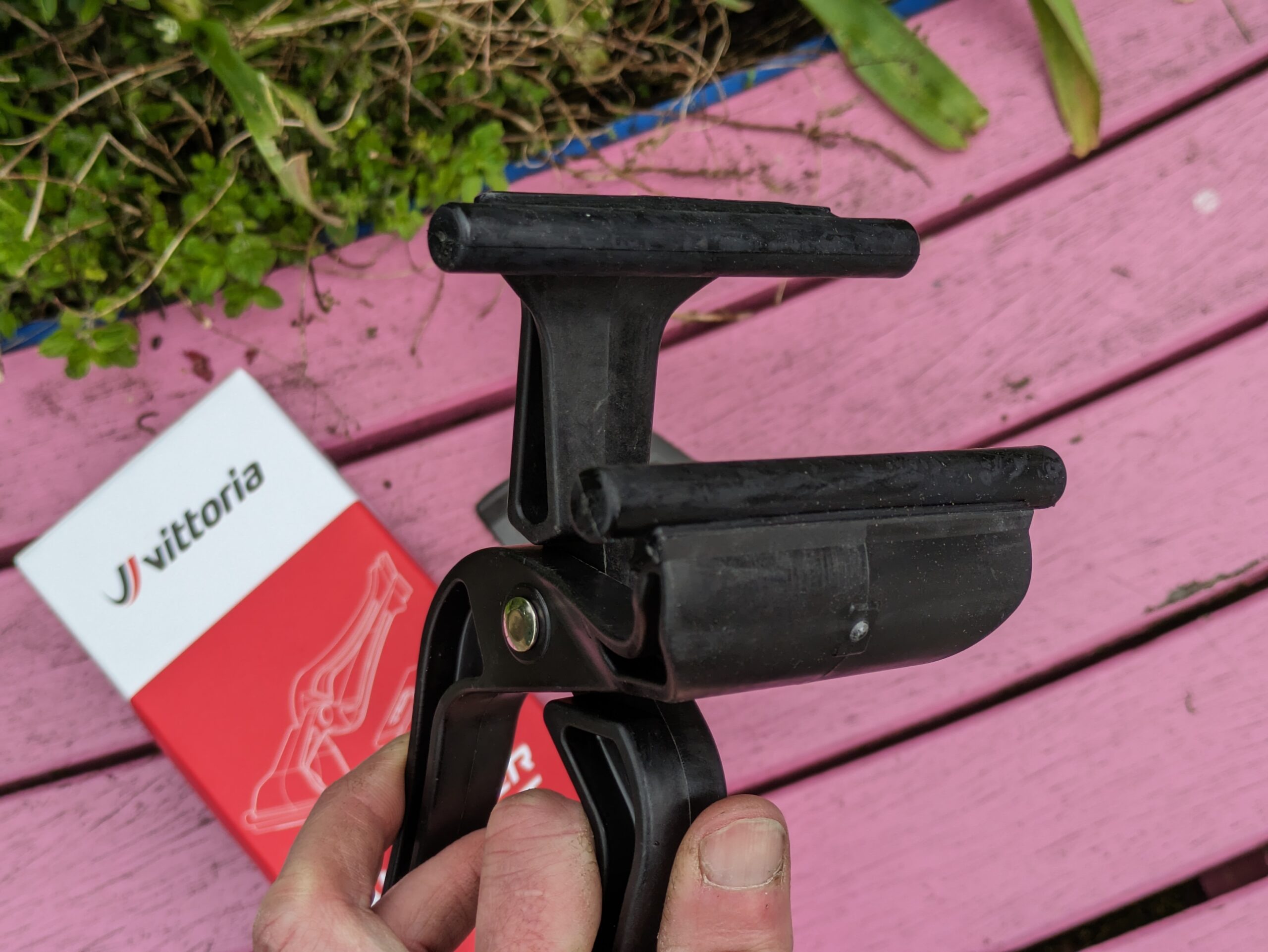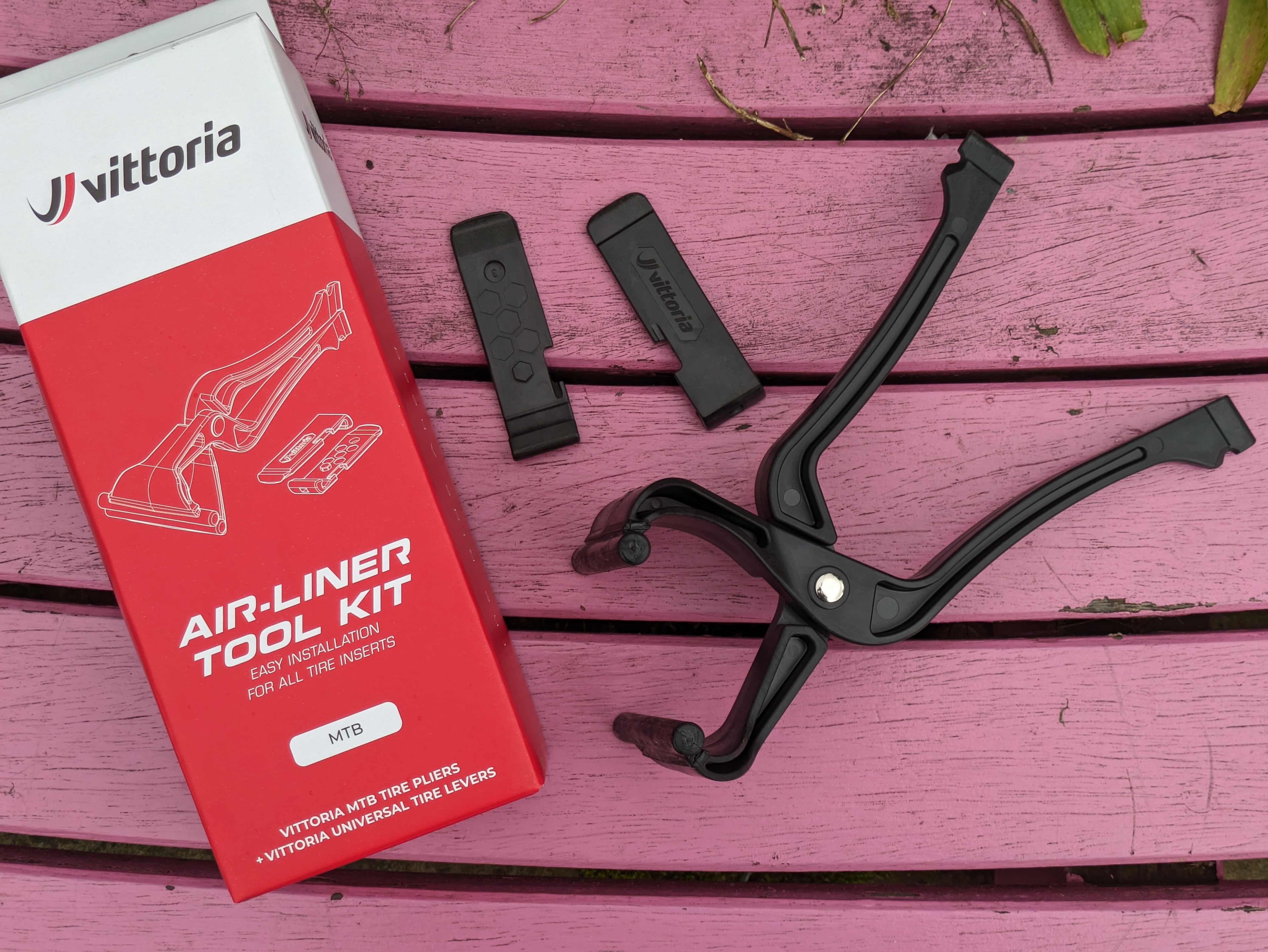 To be honest with y’all (as we always are), we’ve not got this item in to work on Vittoria Air-Liner tyre inserts. We just wanted something for those rare b*st*rd tyres that are really, really, really hard to get the bead away from the rim wall. Tools like this have existed for decades but they are never big enough to accommodate modern mountain bike tyre sizes. Designed to “provide a gentle but secure grip on the tyre, which is needed when removing the tyre bead from the rim.” The ends of the handles can be used as tyre levers (even though you also get a pair of separate levers in the box too).