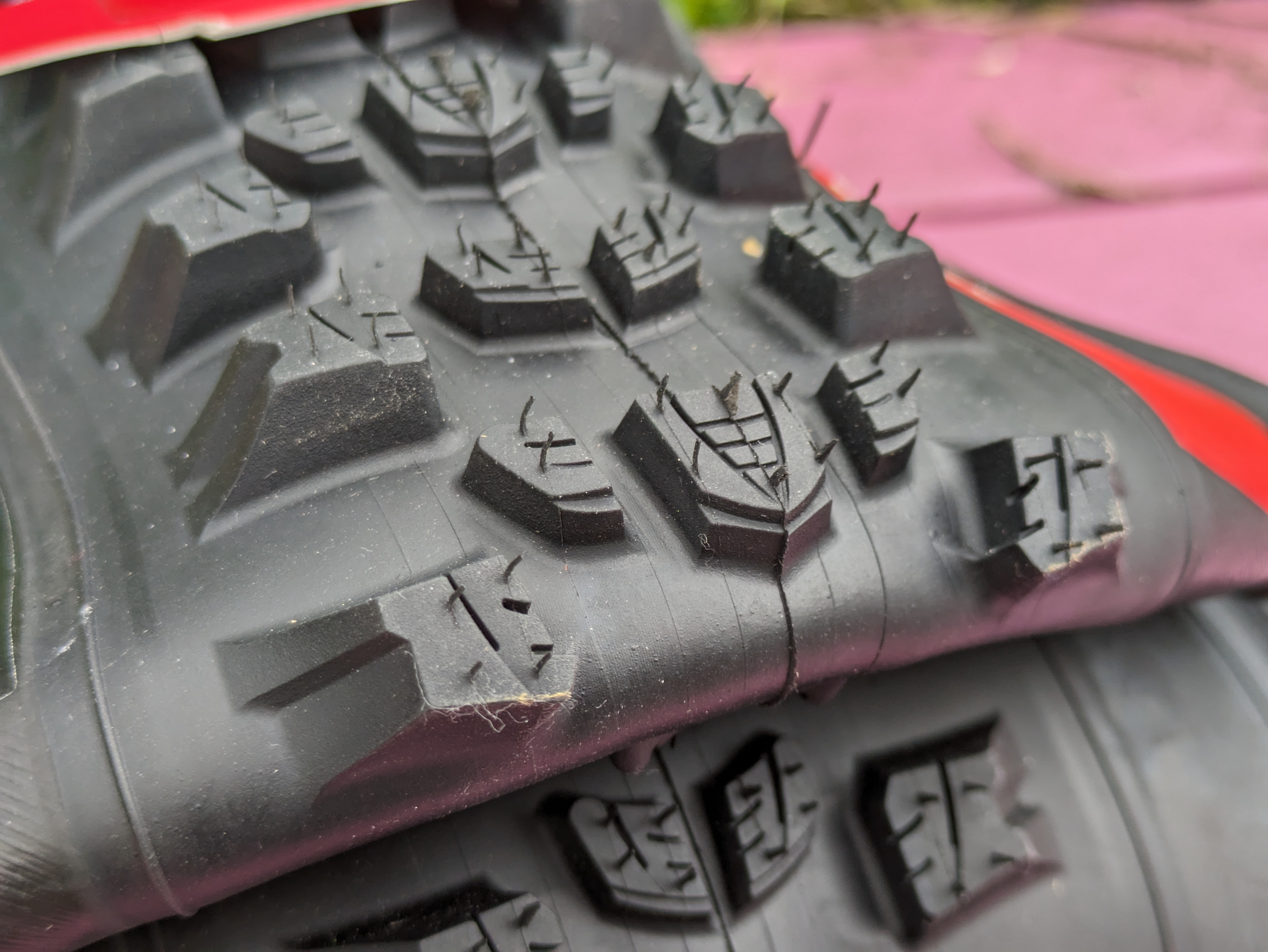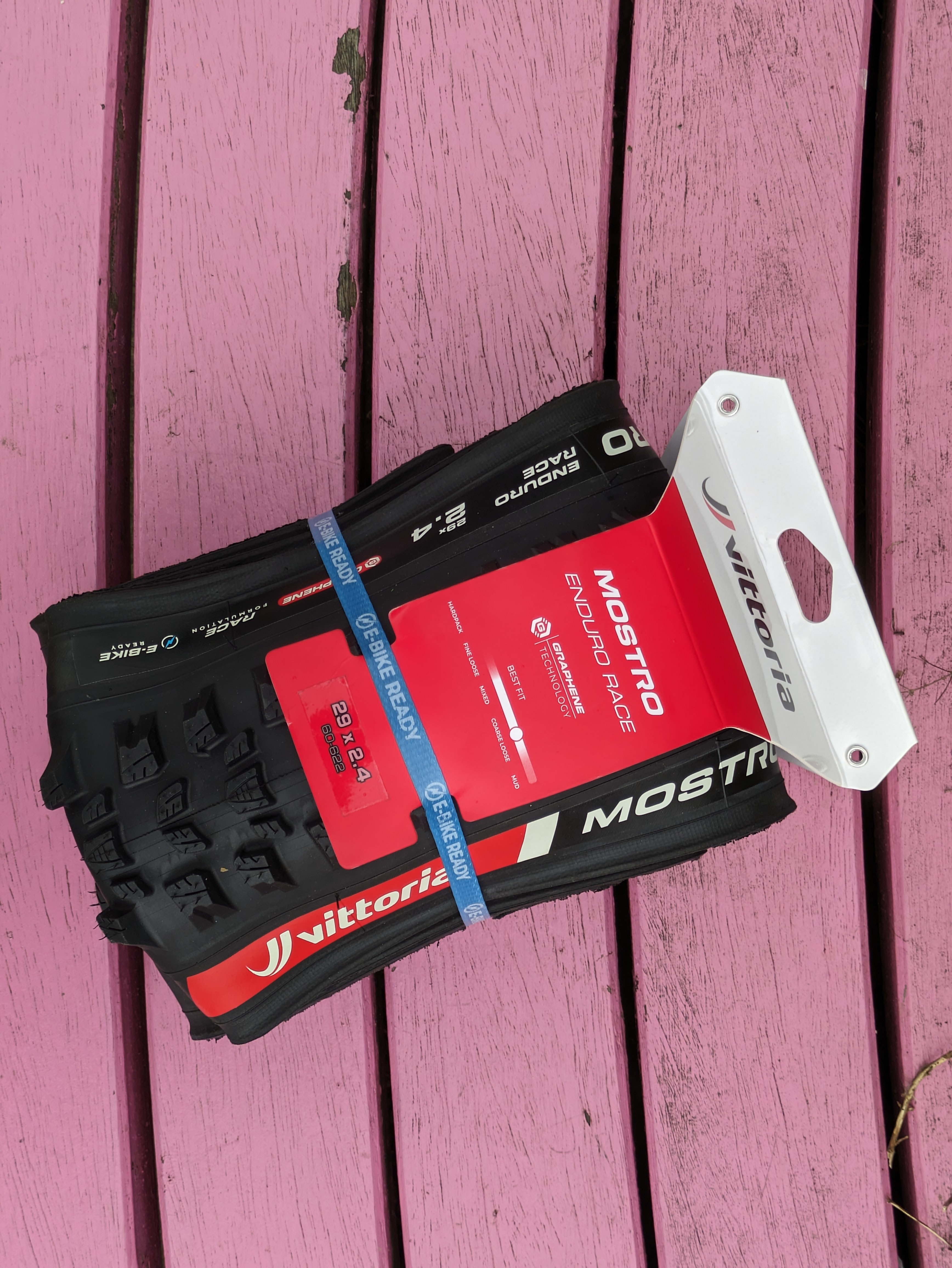 The latest tyre beginning with M from Vittoria. Joining the Mazza, Martello and Mota, the new Mostro (Italian for “monster”) is intended for loose conditions. As is tradition with new tyres, we first have to pointlessly compare to some existing tyres from other brands. This is The Law. To my [Benji] eye, I can see echoes of the Specialized Cannibal and the Pirelli Scorpion Enduro. Vittoria sez: “Featuring a new V-formation tread pattern with alternating mid and center lugs adorned with pronounced trailing edges, Mostro ensures unwavering stability across rocks, roots, and loose surfaces. The innovative tread profile, equipped with progressive siping and surface-stepped technology, enhances traction and cornering prowess while facilitating rapid acceleration.”
