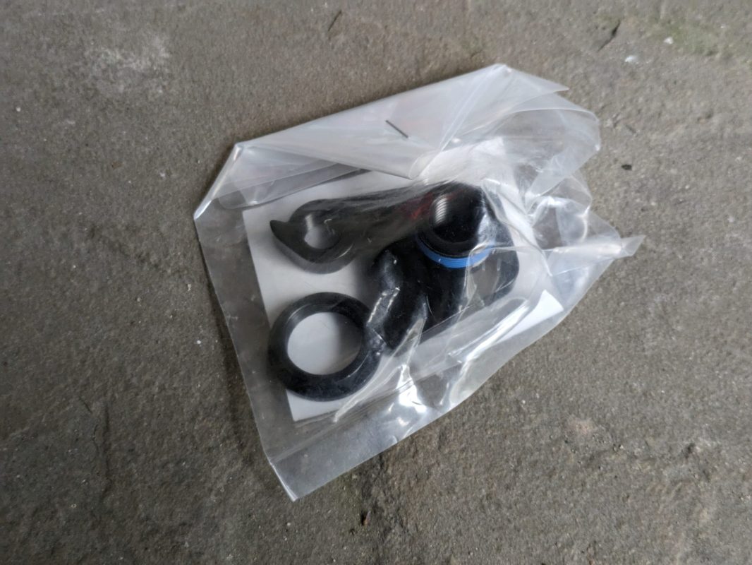 Don’t worry, this is not for the majestically yellow Saracen Ariel 30 Elite that arrived last week. We’ve not damaged that bike yet. This replacement hanger is for the Saracen Ariel 50E that Benji still has. He has been kindly allowed to keep hold of it for a bit longer as it’s been pretty much acting as his Benchmark eBike. It’s the e-bike by which all other e-bikes that come in get put up against. Sometimes literally. It’s very much a nice reminder that Nm aren’t everything when it comes to e-MTBs. Anyway, the inevitable happened, the rear mech had a shunt on a stump, and a new mech hanger is required.