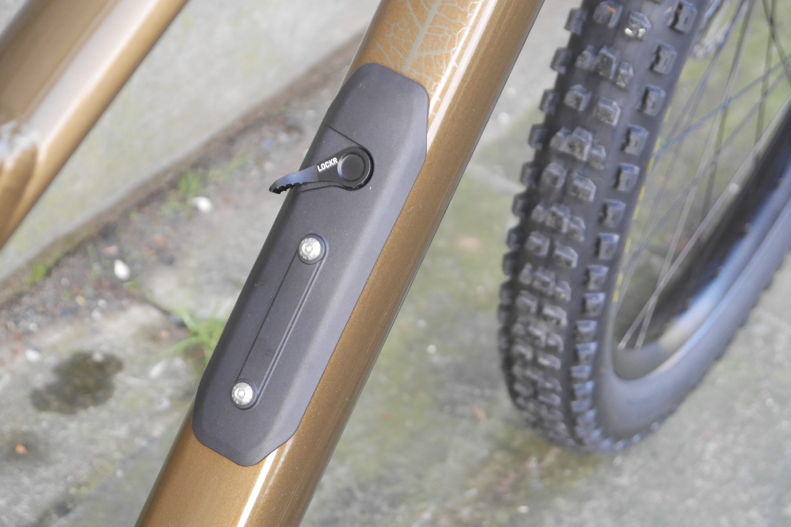 One of the more striking features of the Laufey is that it has down tube frame storage. Called the LockR, it’s a feature that we only ever really see on full suspension frames. A hardtail with frame storage is a pretty unique proposition.