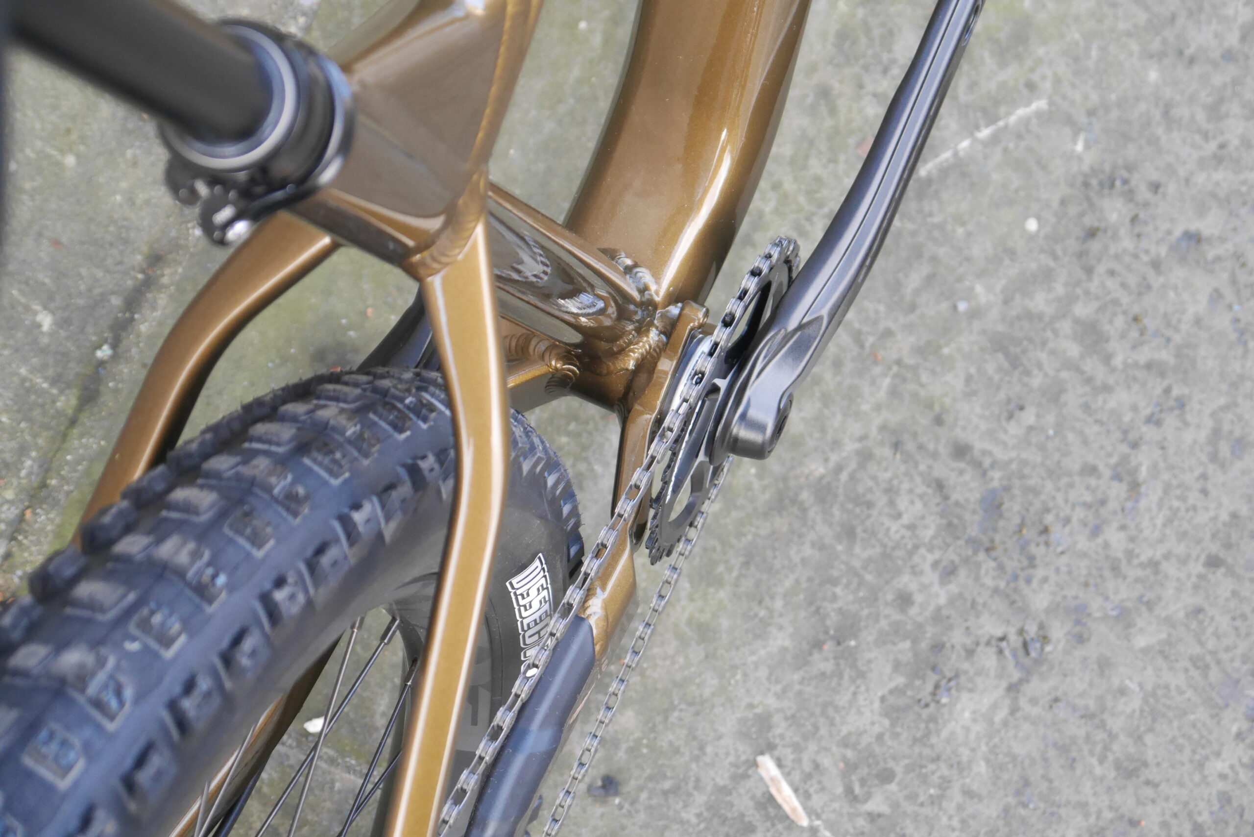 Back to that BB-chainstay yoke. It’s a way of affording the genuinely impressive tyre clearance. The 2.6in tyres fit in easily. So easily that I didn’t initially realise the tyres were 2.6in. Until I rode the bike.