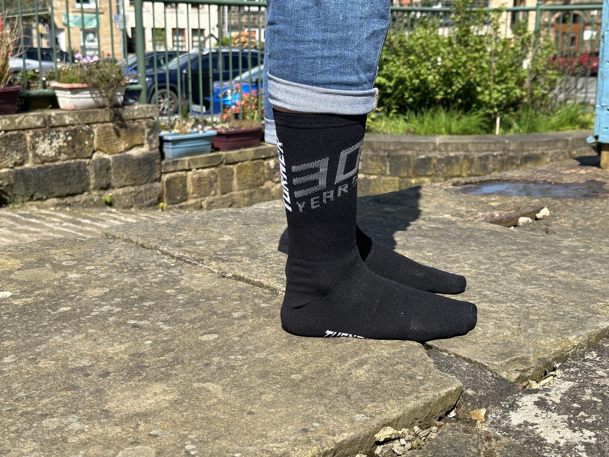 I couldn’t not have a pair of ‘the fastest socks in the world’. The pattern on these socks is not just decorative – they are ‘turbulators’ designed to make the air around your ankles flow faster. These are right on the 19.5cm UCI limit for sock height. Yes, there is an actual rule about sock height. Us MTB riders with our knee socks – total rule breakers! These socks have been wind tunnel tested and found to offer ‘4-8 watts drag reduction when compared to standard socks and equal to ribbed lycra socks of similar height’. Maybe they’ll make the Pennine winds feel less severe?