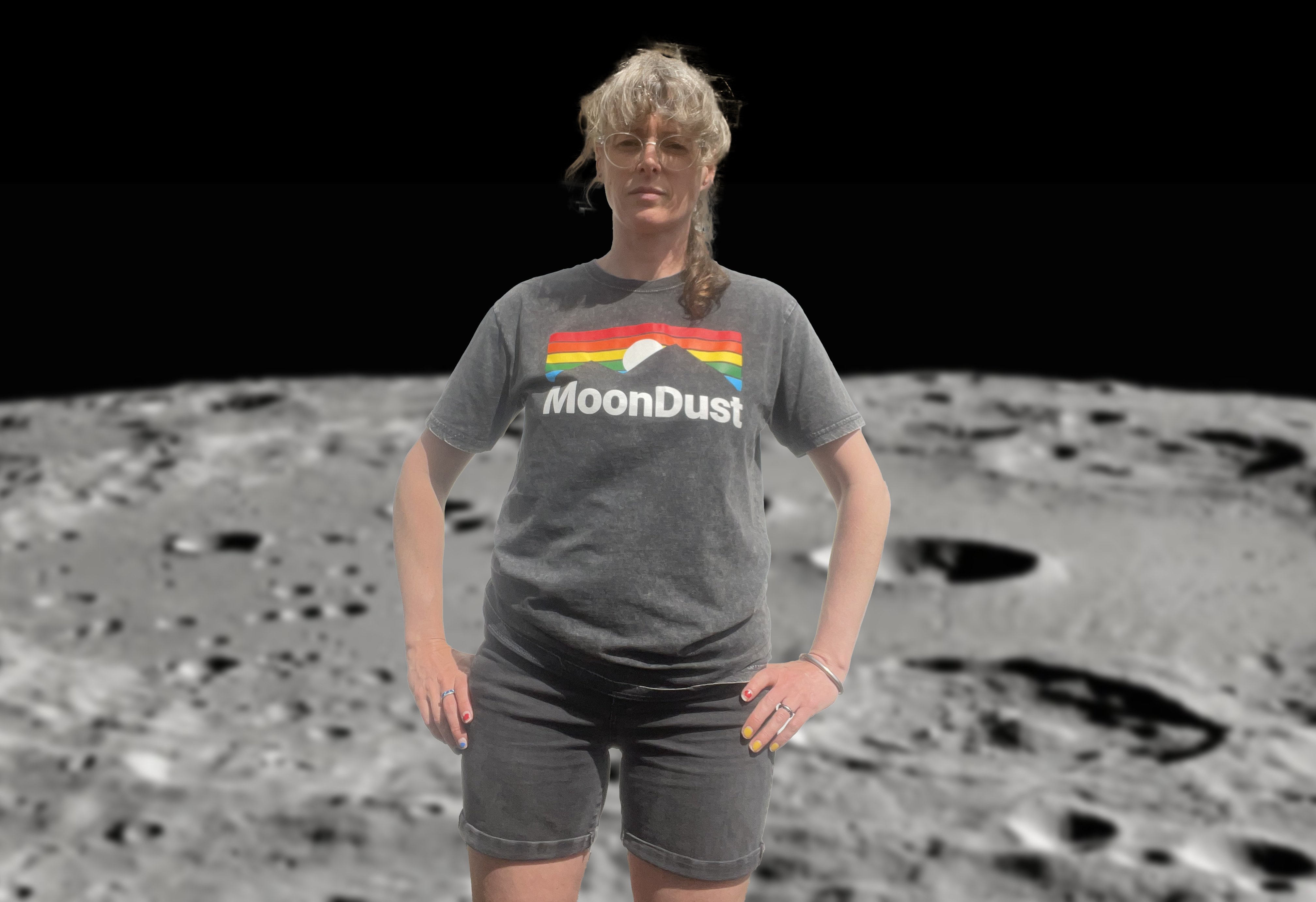 No, that’s not a funny shaped sock, it is indeed a T-Shirt. And while this is a nice T-Shirt designed and printed by Megan from Moon Dust, it is not a pair of socks. But there weren’t any socks left – and with their colourful designs it’s no wonder. Some of their designs employ colourful language too, and there’s a good streak of social justice throughout. Plus cats. Megan had a cat in her back pack, and it goes bike packing with her – if that’s your jam, check out the website for more cat content.