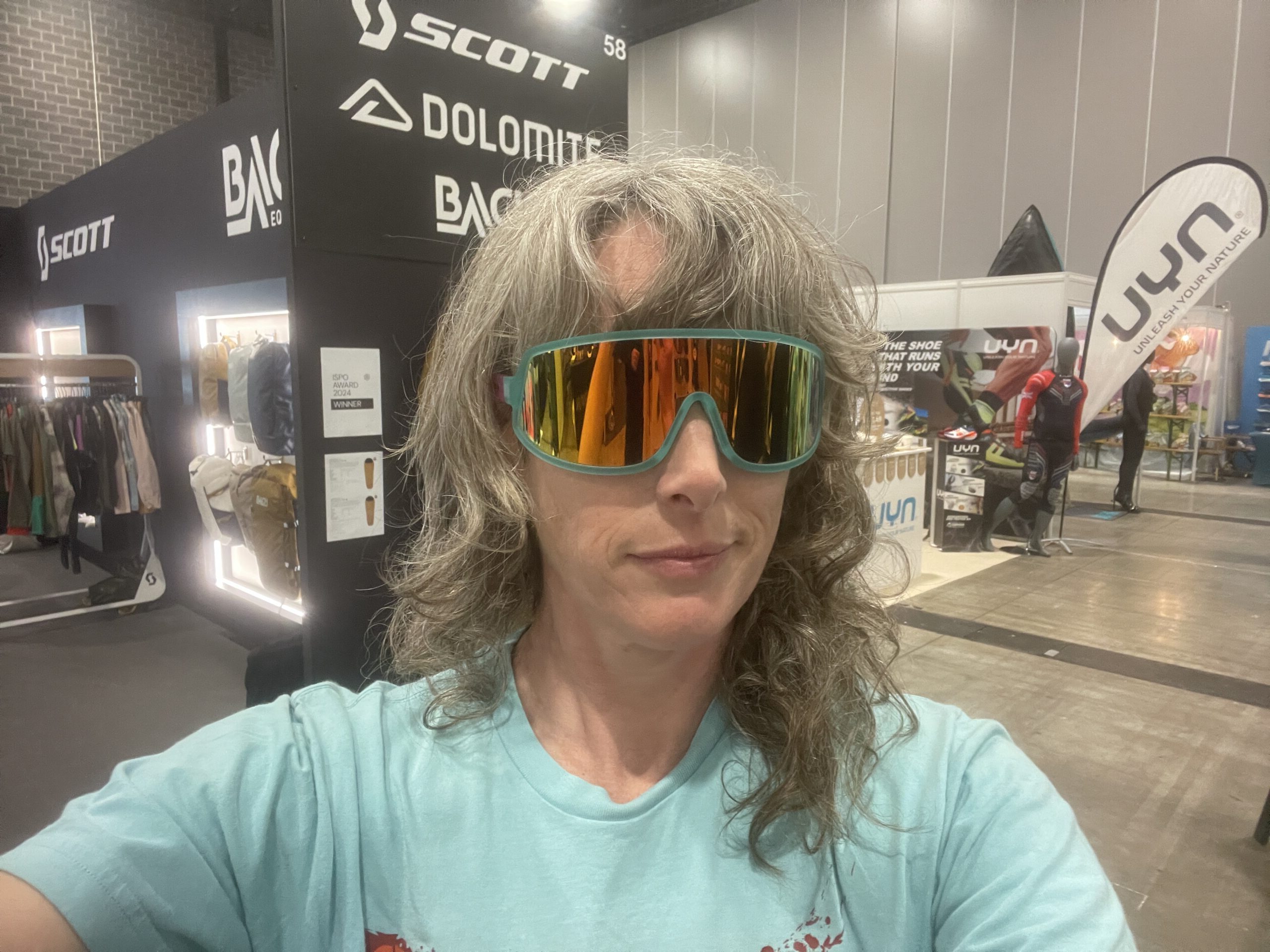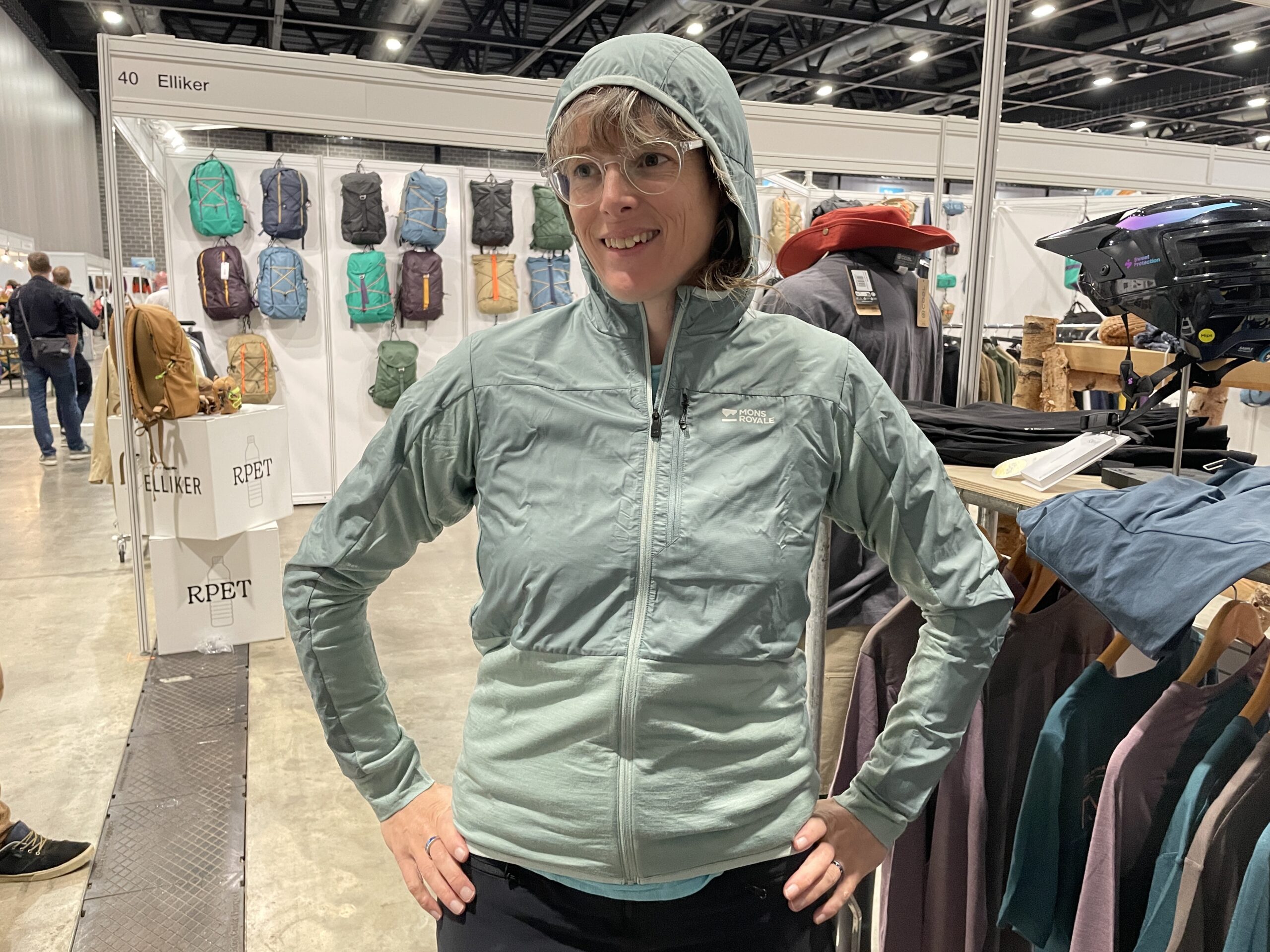 Merino loveliness as ever from Mons Royale, this time combined with wind protection zones in a zipper hoodie. We can see this being useful on those days when you’d cook on a climb but be cold once the wind got you at the top or on the descent. With under helmet hood for extra cosiness when needed. We don’t have more info on the pants, but Ross is holding up a women’s small, and they didn’t seem overly short in the leg. Promising for taller riders. There was a great selection of sports bras, underwear and clothing in some nice splatter and tie dye designs too. The last gear we had from Mons Royale came in over seven years ago and we’re still wearing it – we’ll do our best to get a refresh in for a closer look.