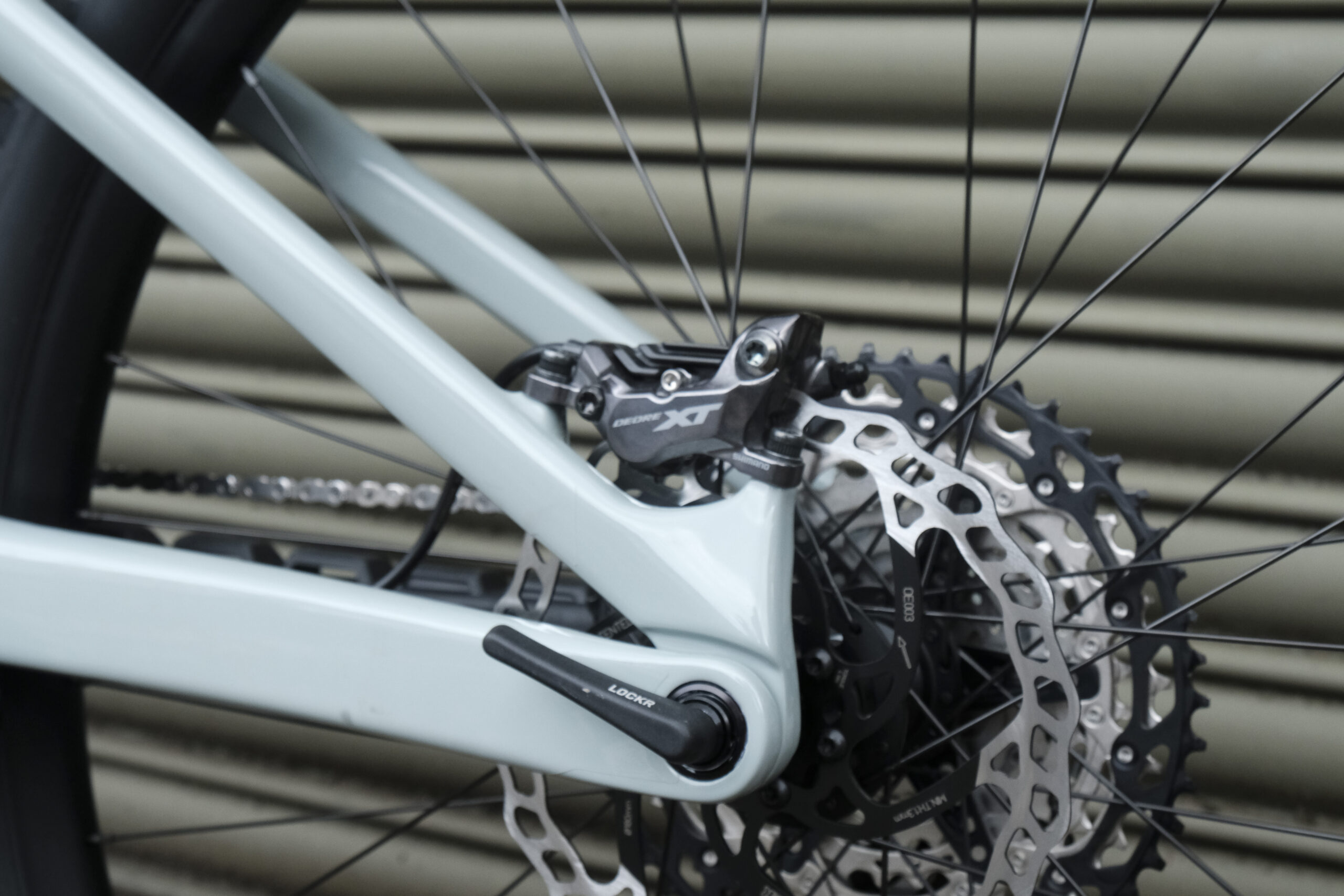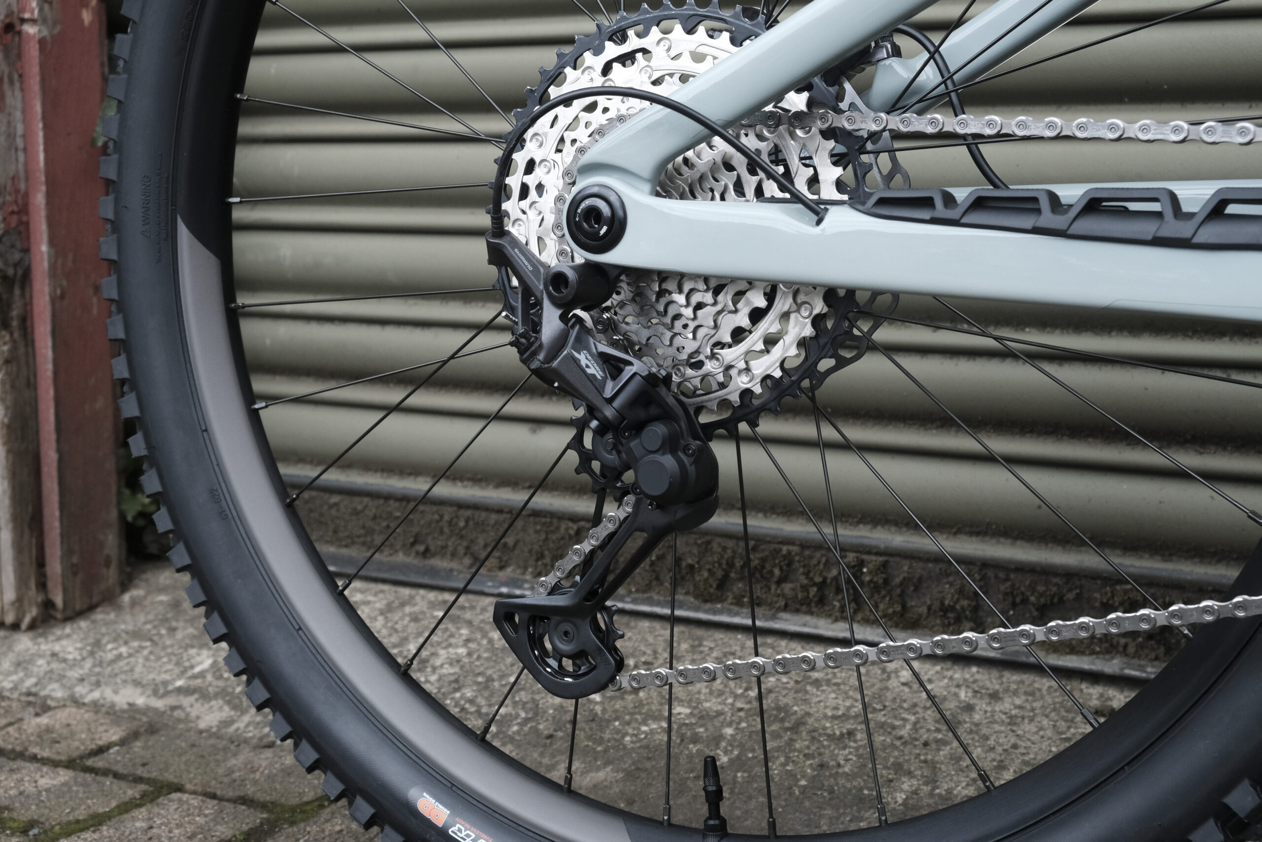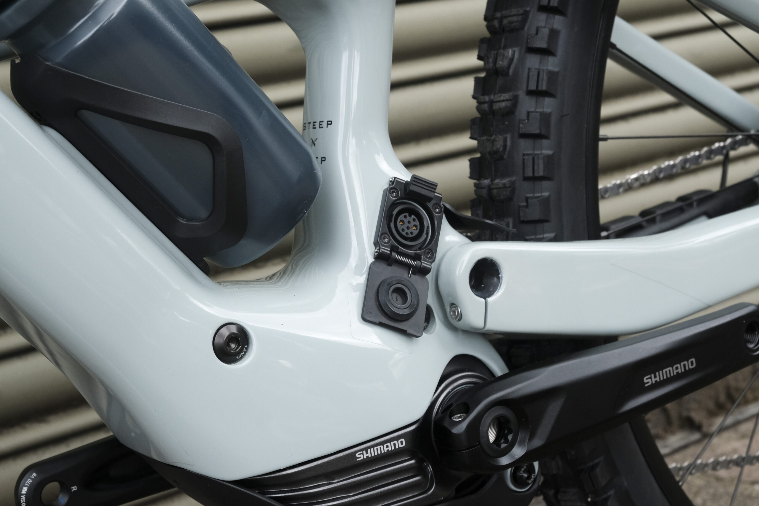 All in good time. For now, let’s just hit up some stat facts: 160mm fork, 150mm rear travel, 64° head angle, 77° seat angle, 440mm chainstays, massive dropper, Shimano XT everything, a few battery options (420Wh or 630Wh in down tube, 210Wh range extender also).