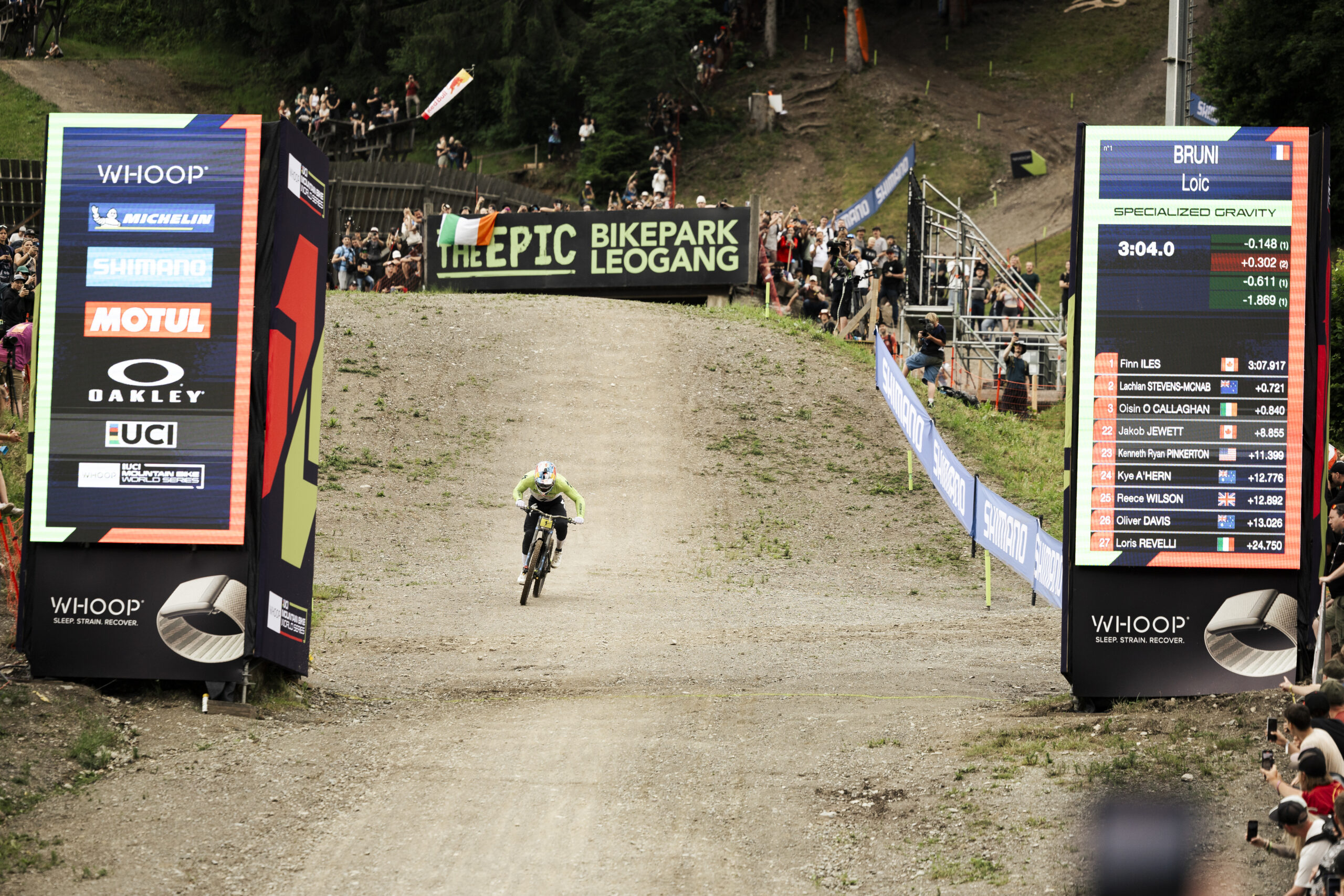 Despite making no notable errors, Troy Brosnan (Canyon CLLCTV Factory Team) was unable to trouble the top places, which meant there were only two competitors remaining who might deny Iles the win. Of them Brosnan’s team-mate Luca Shaw was fast, even briefly fastest, but a small mistake on the corner that had caught out so many riders cost him over a second and left him in 6th place.