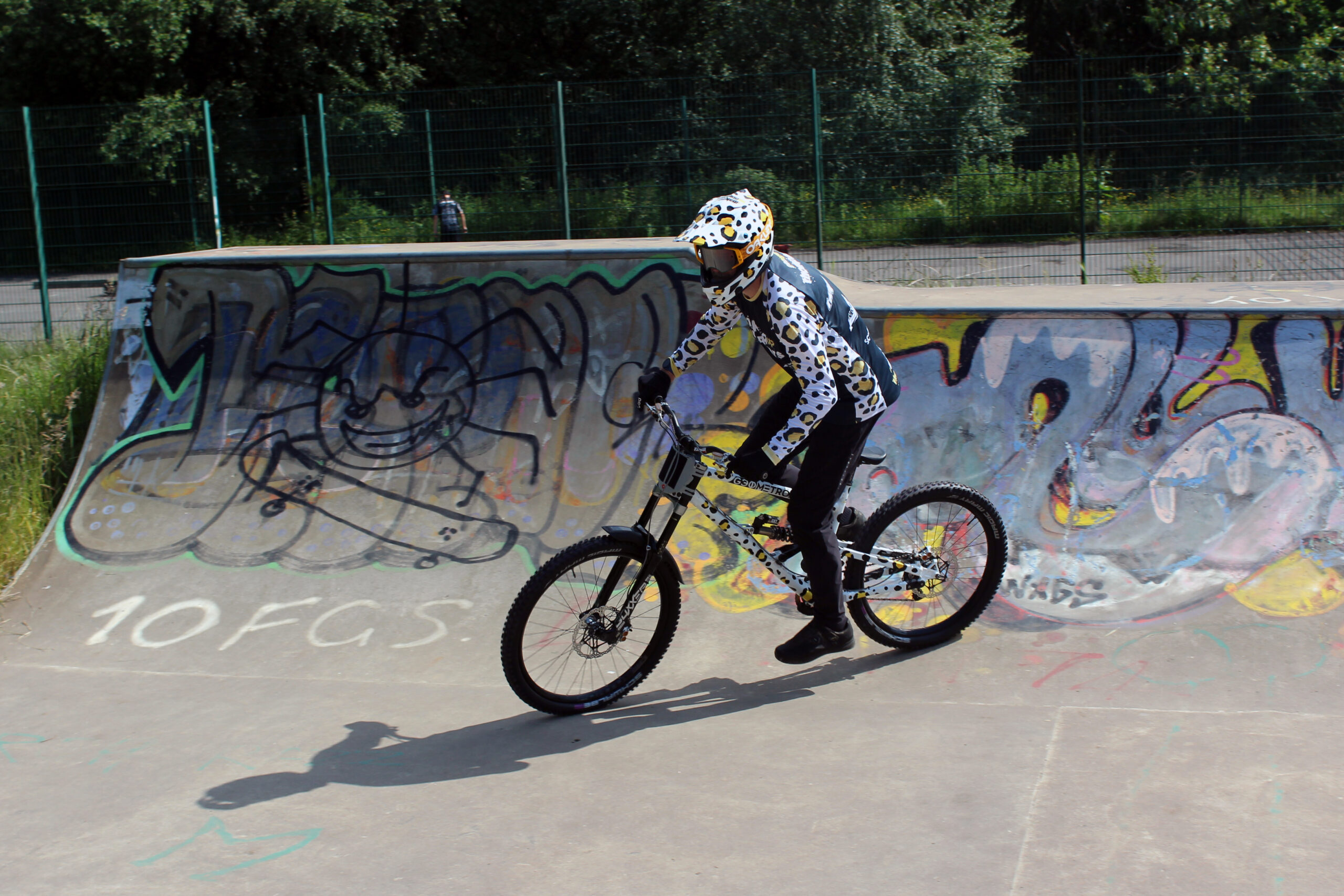George Thompson’s ‘Making Up The Numbers’ XXL Geometron G1in ‘snow leopard’ paint finish is certainly eye catching. It might even have him catching up with the rider in front. We did do a slight double take though – because surely at this size, it should be giraffe, not snow leopard?