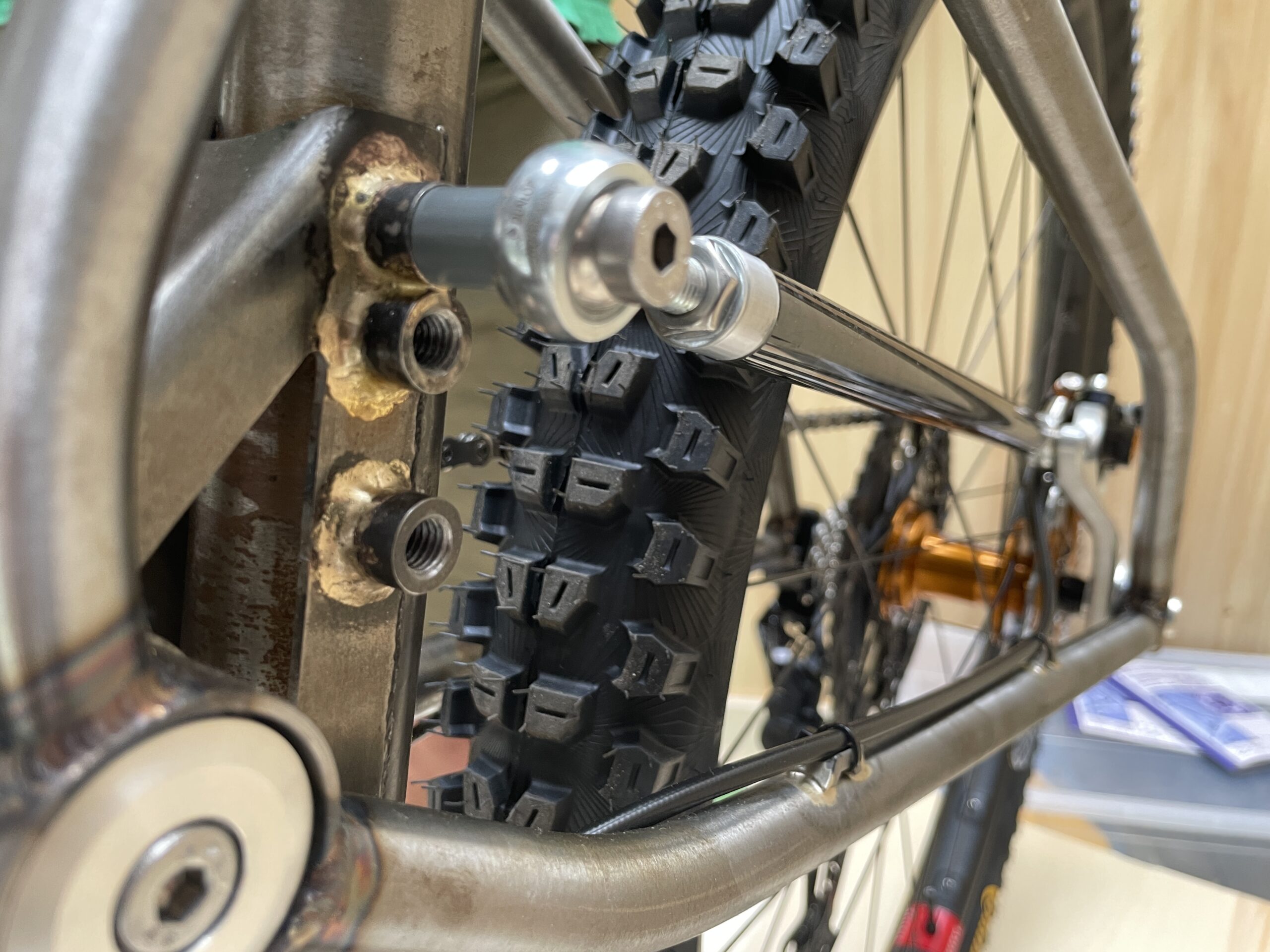 So the idea will be that the production swing arms will have an interchangeable dropout so the main piece of the swing arm will be one piece, with a dropout that does the chainstay length, that will also have a mullet option. So we will be able to have three different chainstay lengths with two different bottom bracket drops by changing the dropout insert.