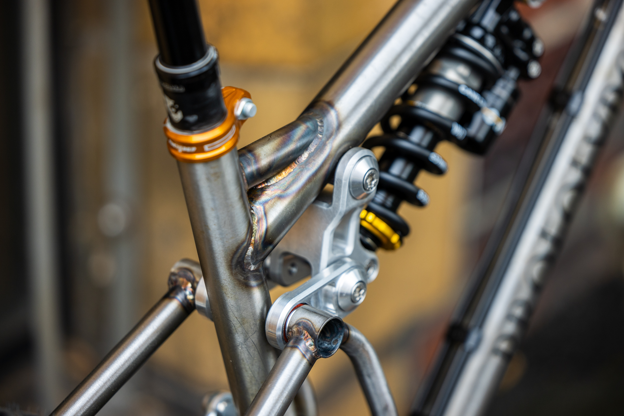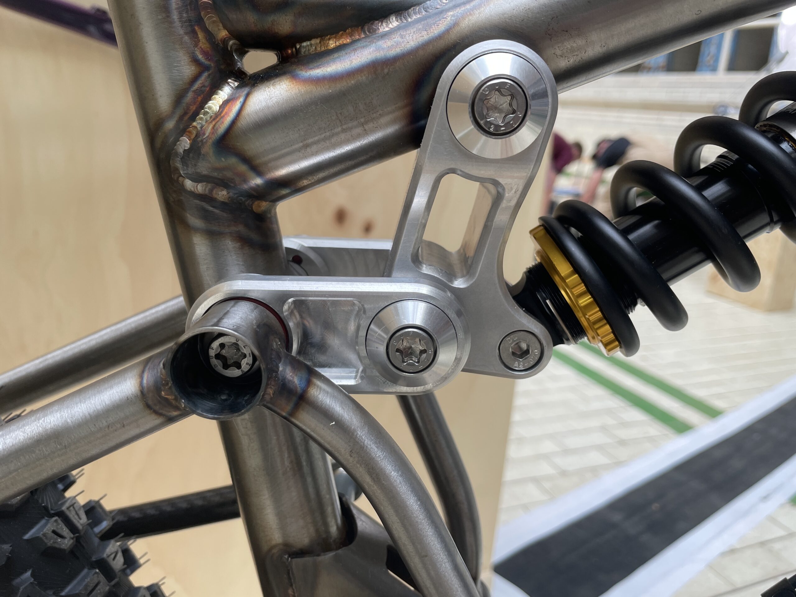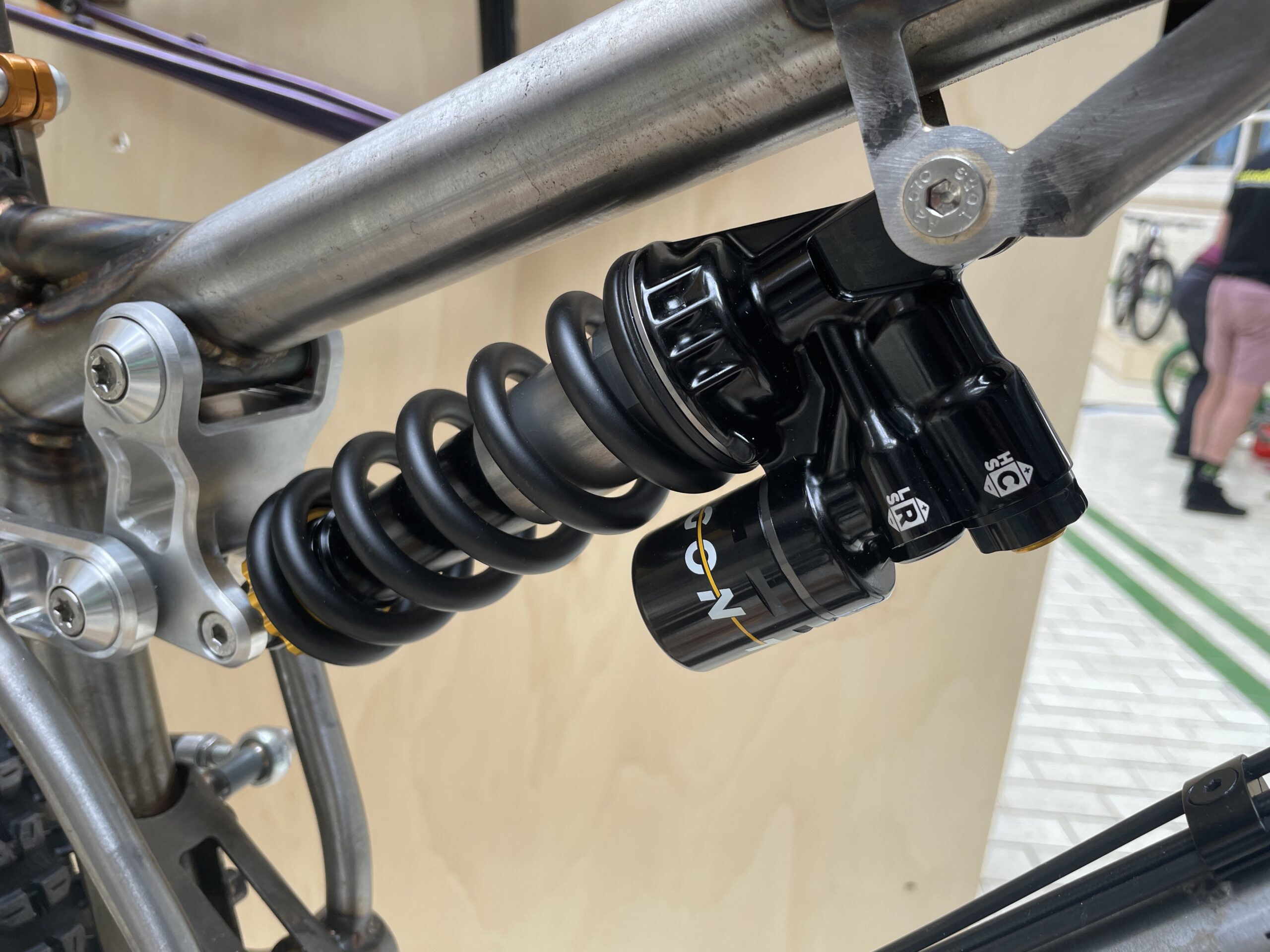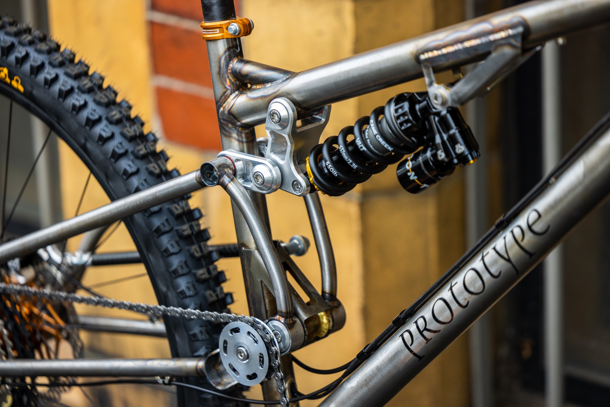 No, they were designed in house and it’s one of the reasons that these are unpainted prototypes is that we’ve had some difficulty getting stuff machined. The guy that we dealt with at our previous machine shop left, and then everyone’s busy. Ultimately they will be made in Sheffield, we do have a machine shop there that we use. So the idea is that the production frames we will know who has done every single part, we’ll have much more control over the whole process. It will effectively be that I could name the the guy who did the machining, the guy who does the powder coat – all of that will be done in the UK purely for control more than anything. But at the moment though those links were actually machined in China.