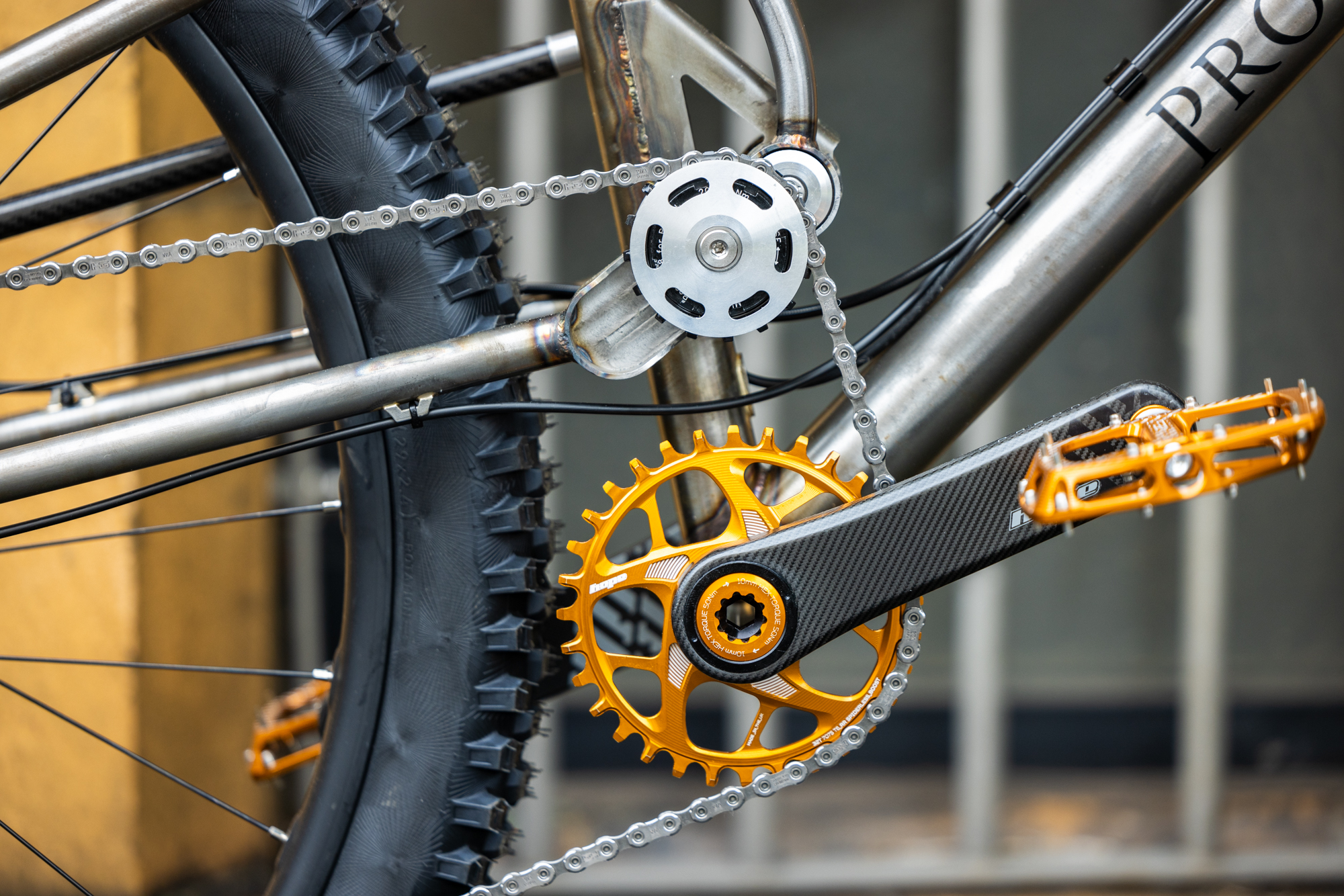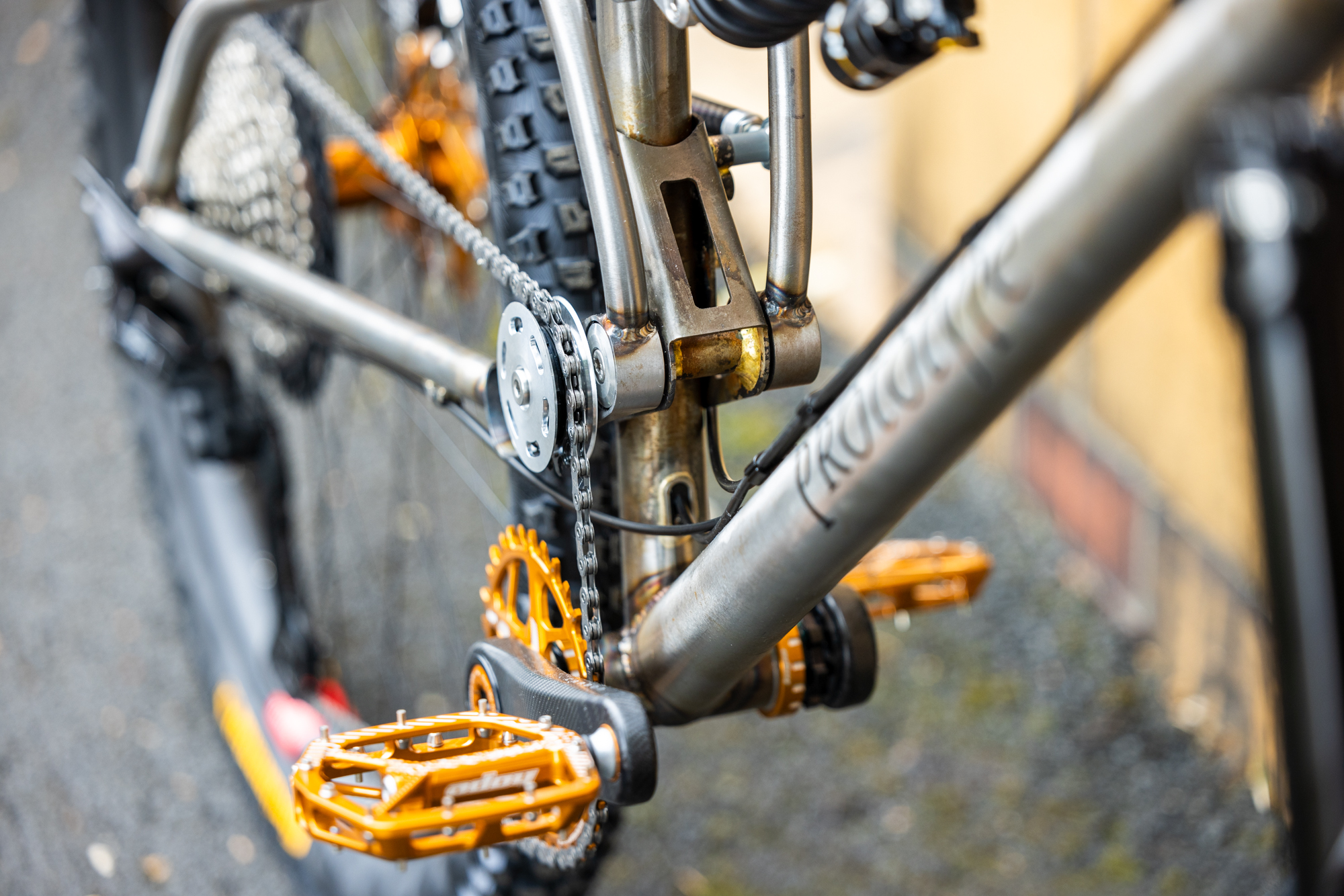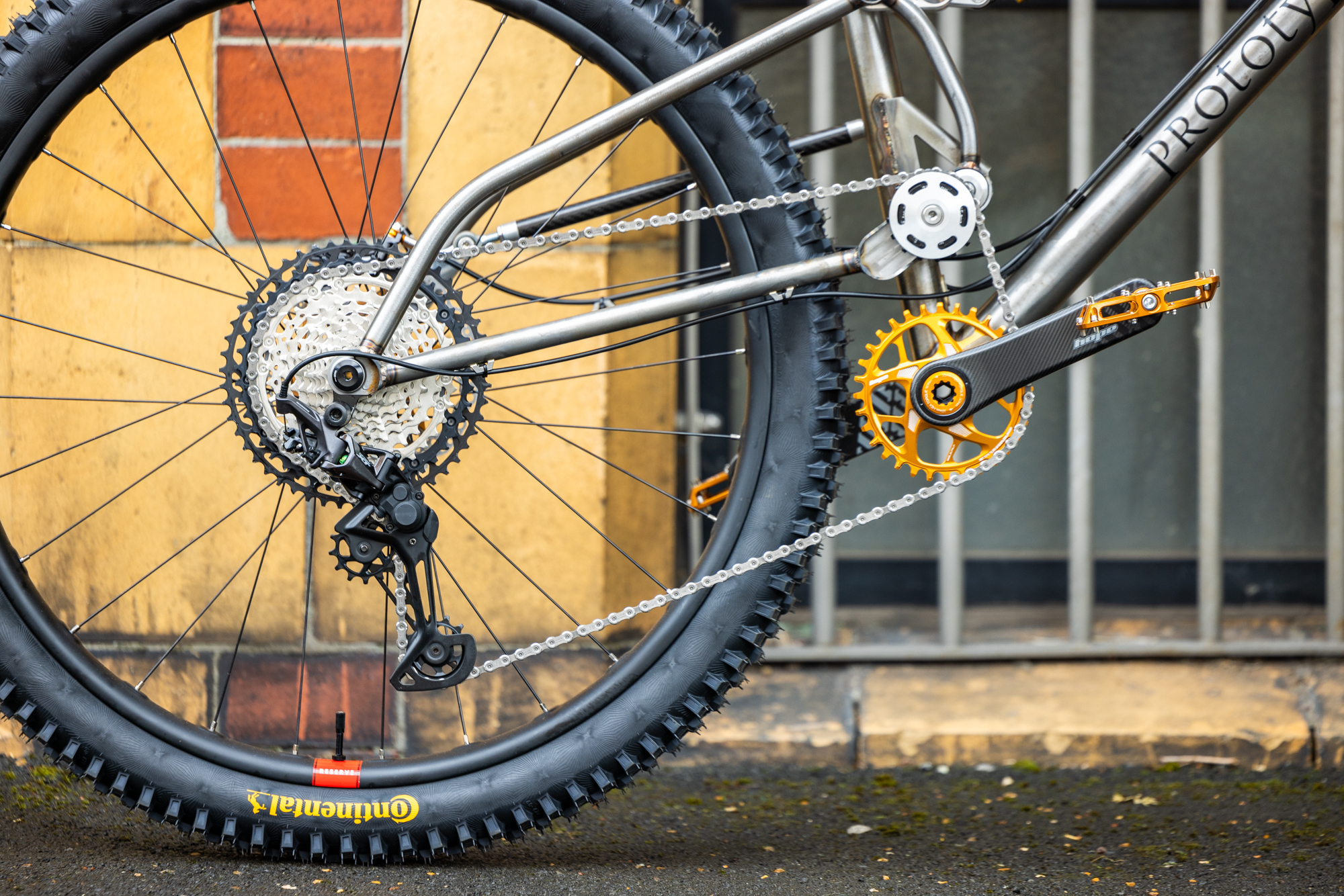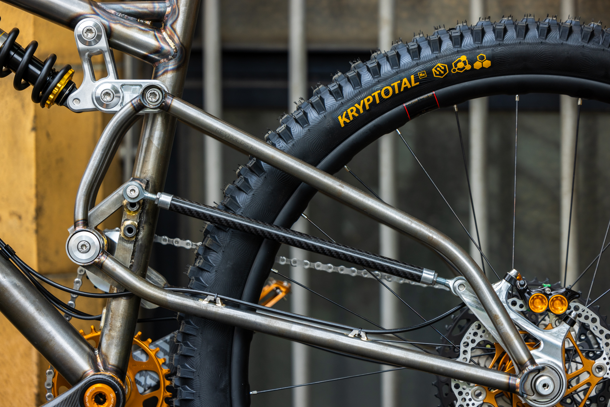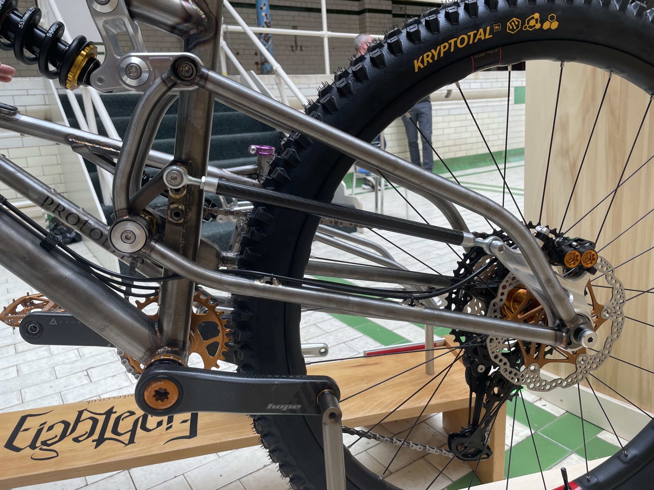 No, they were designed in house and it’s one of the reasons that these are unpainted prototypes is that we’ve had some difficulty getting stuff machined. The guy that we dealt with at our previous machine shop left, and then everyone’s busy. Ultimately they will be made in Sheffield, we do have a machine shop there that we use. So the idea is that the production frames we will know who has done every single part, we’ll have much more control over the whole process. It will effectively be that I could name the the guy who did the machining, the guy who does the powder coat – all of that will be done in the UK purely for control more than anything. But at the moment though those links were actually machined in China.