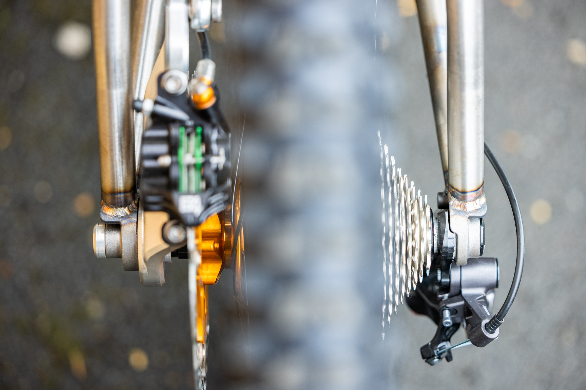 So for production the front triangles will be steel made by us in the Sheffield workshop because it gives us the versatility, so we can offer full custom but also set sizes. The rear triangles is a big old question mark at the moment. We’ve got a lot of contacts that we’re talking to about various different production methods, so steel is still an option, made in various different places. We’re also looking at aluminium both welded and bonded, and we’re looking at bonded carbon as well so it’s pretty wide open as to what the rear end will be at the moment.