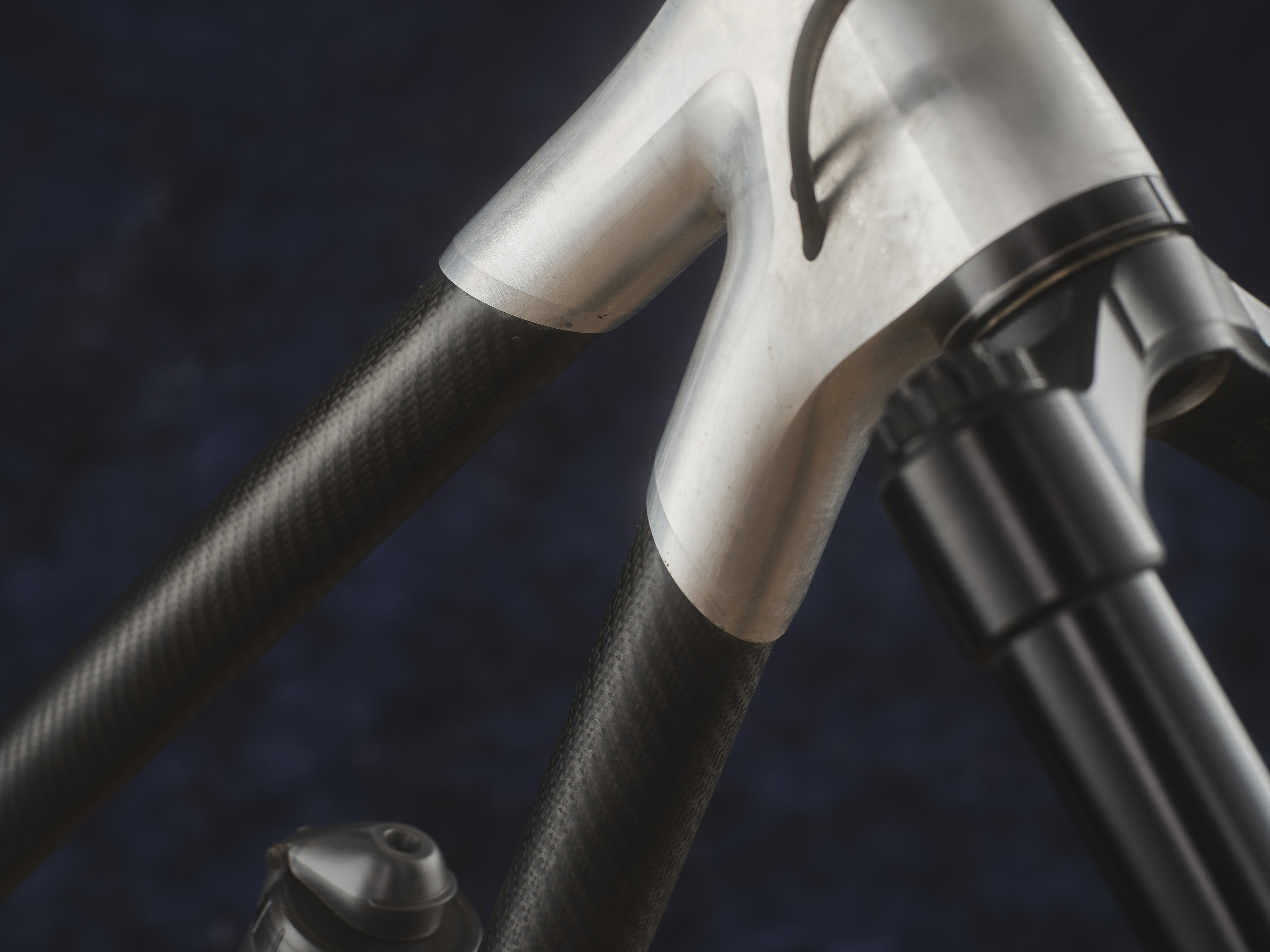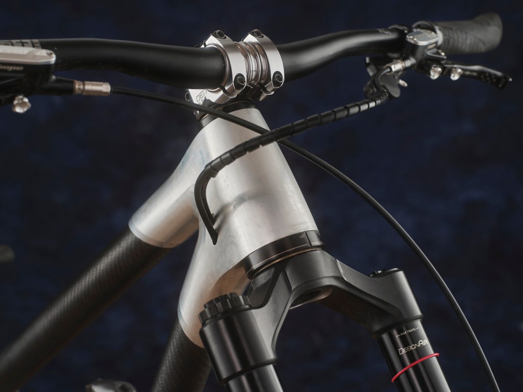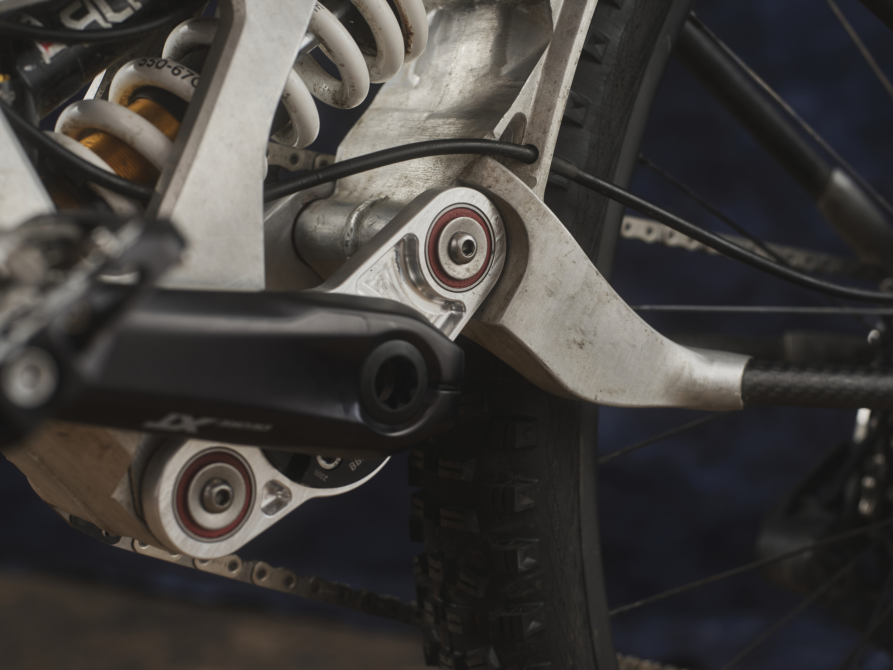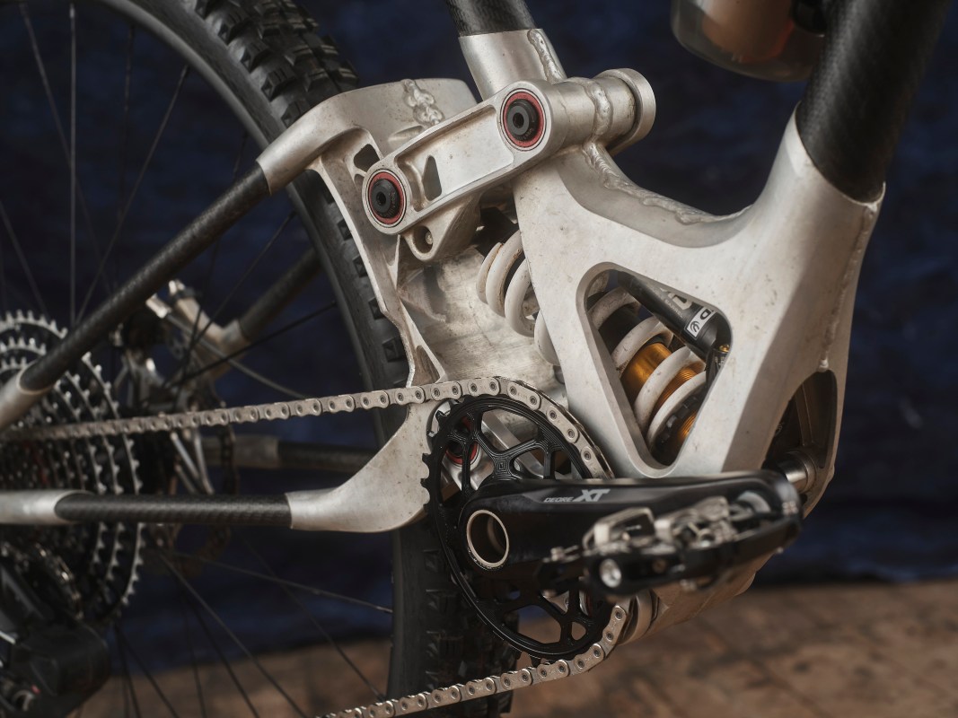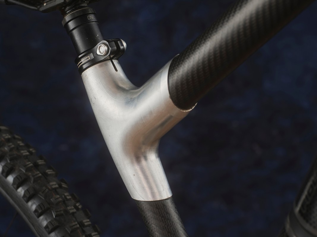 Yeah, the aluminium and the carbon… The reason it’s made like this is this was it was a very complicated linkage and set of things going on down around the bottom bracket and the shock. So, machining it out of aluminium was expensive – the carbon tubing makes it easier to prototype the whole bike.