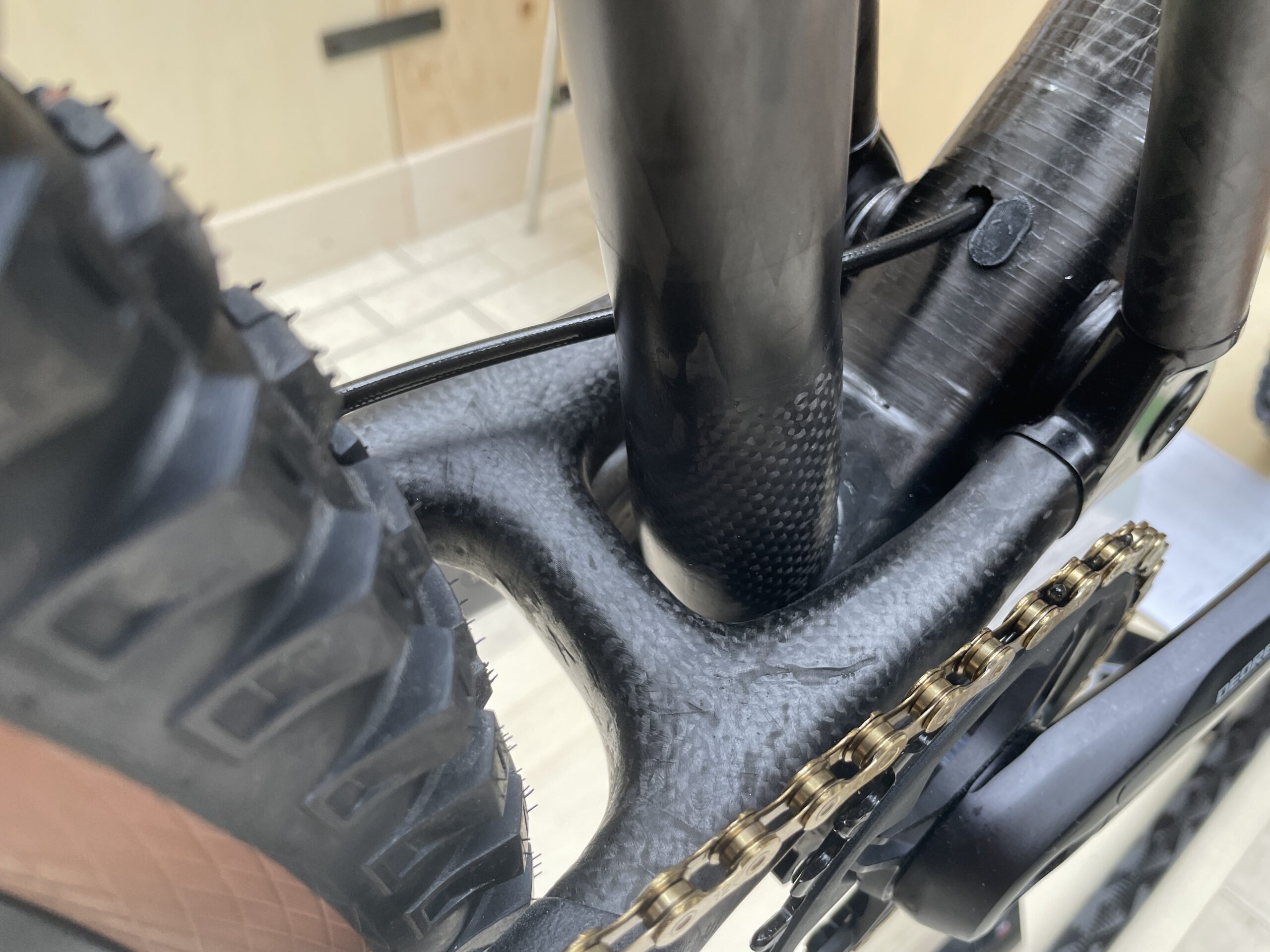 That’s the thing, we also want to leave it raw carbon. Because as you noticed, you’ve got a lot of patterns going on and it shows the layup and the rear triangle has been ground so it looks a bit more of a fuzzy pattern, whereas this is just the finish from the tape. It looks different, but it’s the same process, just been finished with a grinding process. Yeah, that’s how we want to leave it, but some people have asked for it painted.