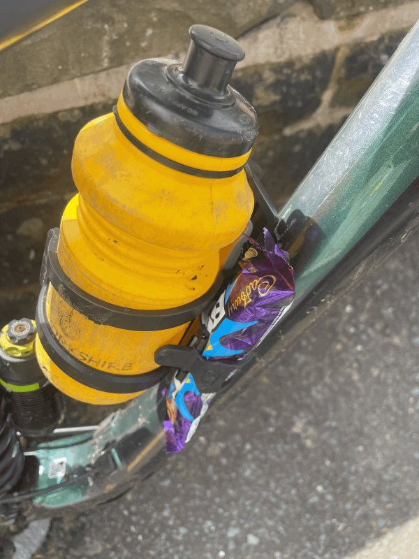 On the right hand of the bottle cage there is a mounting for either a pump, CO2 cartridge or even a Cadbury’s Boost bar (other chocolate bars may fit).