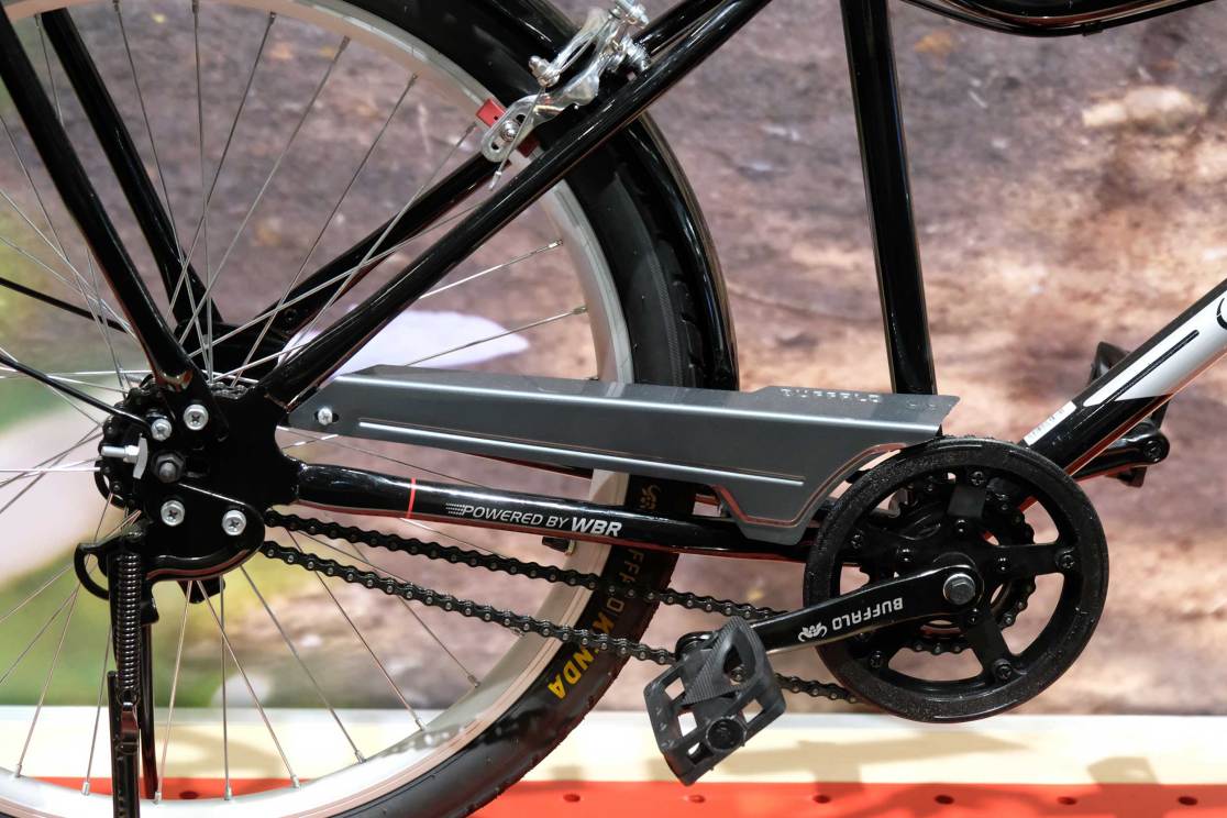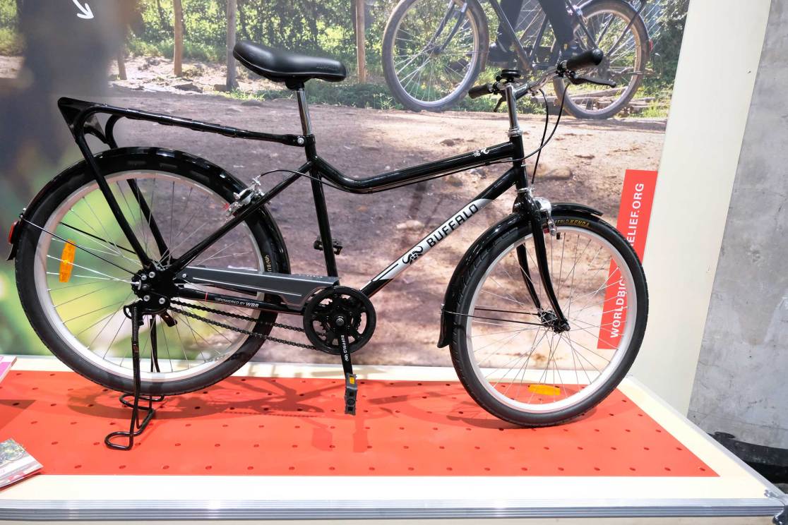 One corner of the SRAM booth was taken up with a special kind of transmission innovation… The mighty World Bicycle Relief Buffalo Bike now has a Mark2! WBR has been championed by SRAM, and other partners, since its inception in 2010. Since then, over 800,000 sturdy, fixable bikes have been sent out around the world to those whose lives they have the biggest chance to improve. Along with the bikes, full support is given in finding and training bike mechanics to support the WBR bikes in order to keep them on the road and making a difference. However, in some places, a single speed bike isn’t always ideal, even though it’s the simplest, so work has been going on to make a geared version of the Buffalo bike.