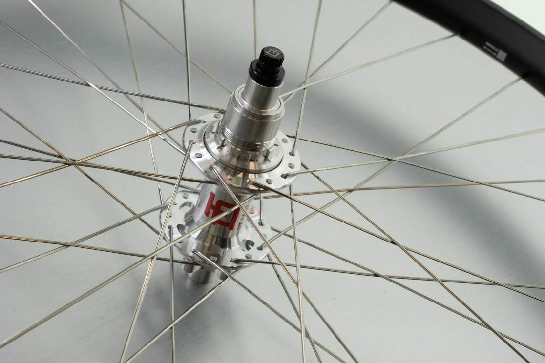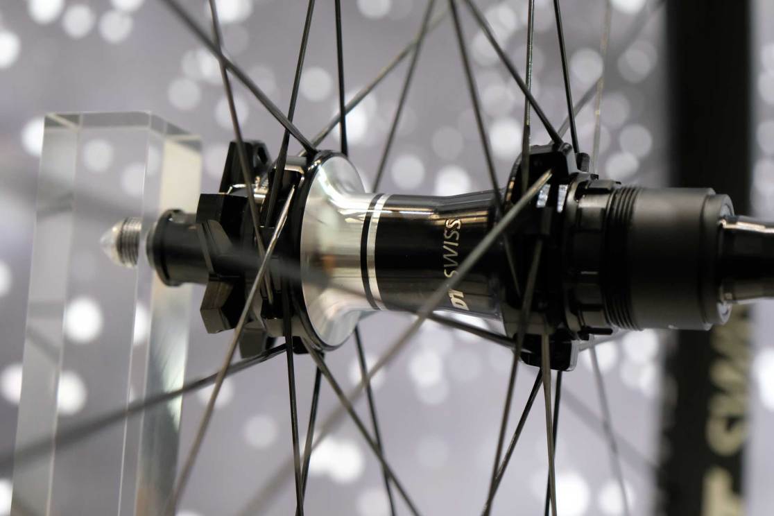 Elsewhere, DT Swiss had new silver foil graphics and some very fancy XRC 1200 and XMC 1200 wheels. The XRC wheels come in around 1300g a set, still with 30mm internal rims and 56T ratchets. The XMC 1200s start at 1520g a set, again on 30mm rims, though with a 56 or 90T ratchet option.