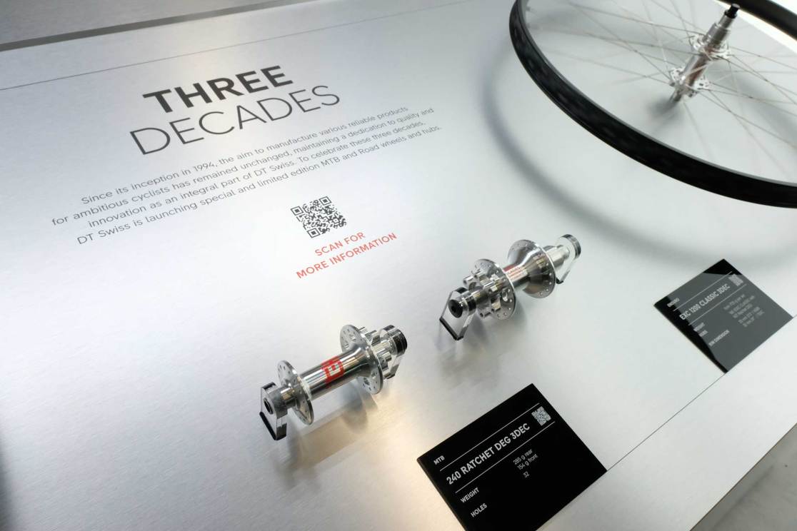 First on the Anniversary train was DT Swiss, celebrating 30 years of making hubs, wheels and then suspension. As a nod to the Star Ratchet’s Hugi hub origins, there’ll be an anniversary wheelset that apes that classic look (and classic click!), with silver J-bend spokes (remember them?) and that classic high flanged look.