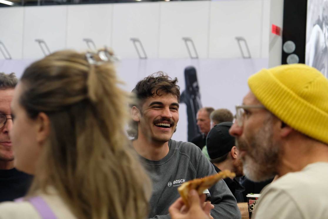 If there were themes to take away from the show apart from ‘Everyone only had ebikes’ or ‘All the new stuff was for gravel and bikepacking bikes’ (which we’ll cover separately on grit.cx) is was this: There were a load of people who were obviously making the time to ride bikes. The bike industry is like any other commercial world: no matter how much fun it looks – whether that be making F1 cars, making rock crushing machines, playing bass guitar for a rock band, building luxury resorts, making pens and watches, or making bikes – there are a lot of meetings, a load of paperwork, there is usually a lot of travel, often across or around the world, and the actual fun bit (which is all that people see) is the 5% of the job that makes it all worthwhile.