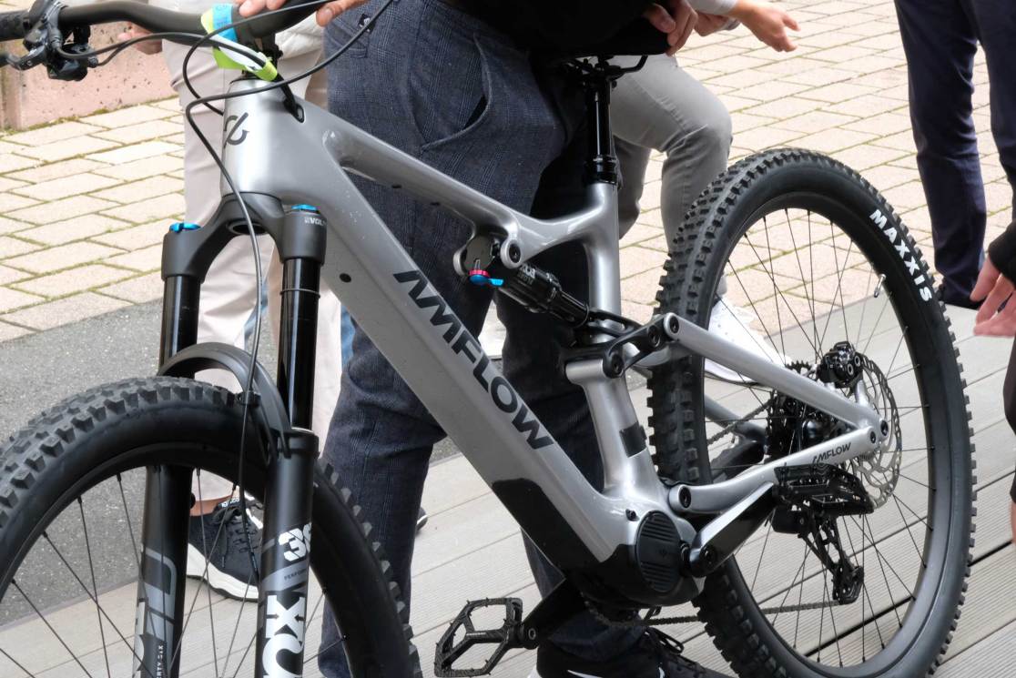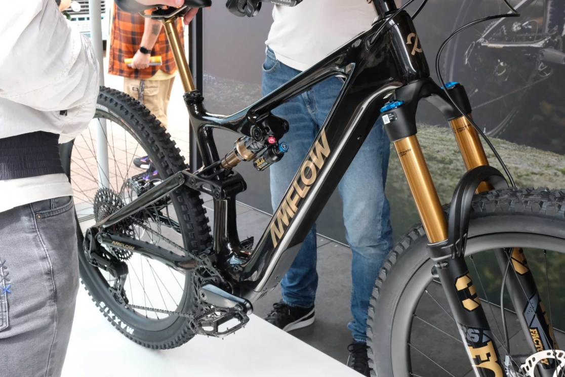 The hype-centre of the show was certainly the Amflow bike booth. It had a line of people round the stand, queuing to have a spin on this new bike. What was the cause of this interest? Firstly, DJI, the drone people (who know a lot about making small, powerful motors that also need to be light) has launched its own ebike motor system – with batteries, motors, touch-screen controllers and related apps and gadgets. It appears to beat much of the competition in terms of power to weight and overall system weight. The motor is 2.52kg, offering 105Nm of torque and its 600Wh and 800Wh batteries can be charged from 0% to 75% in 1.5 hours).