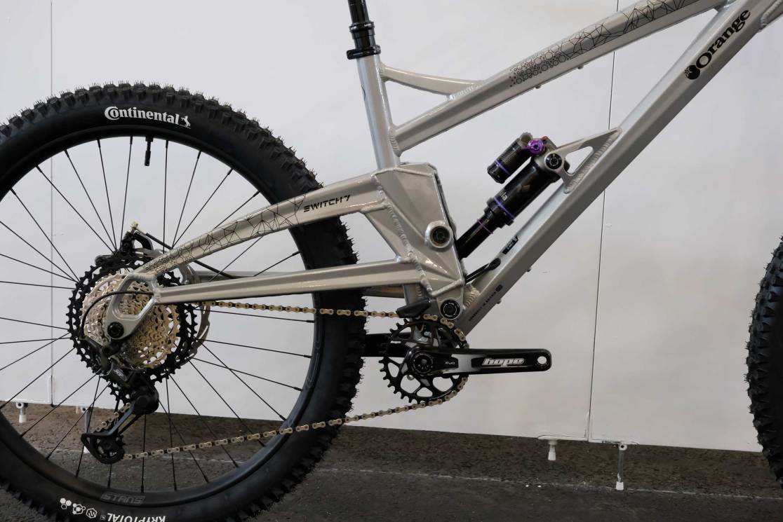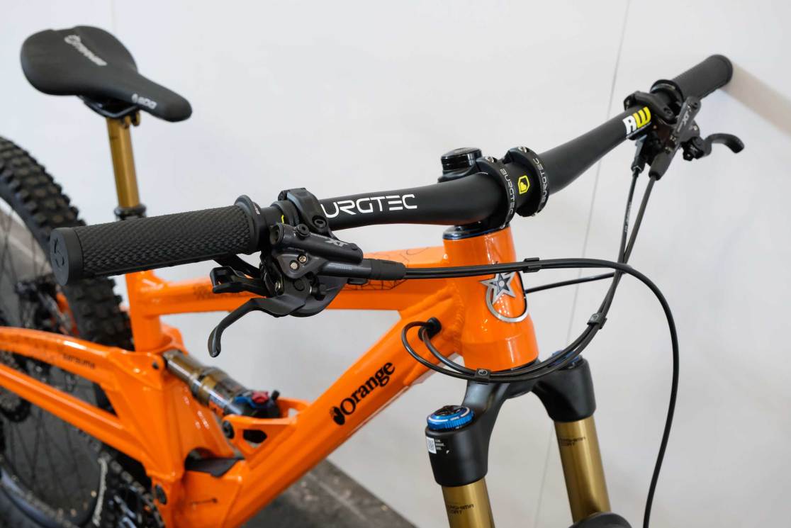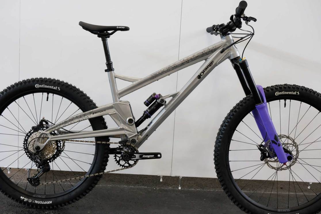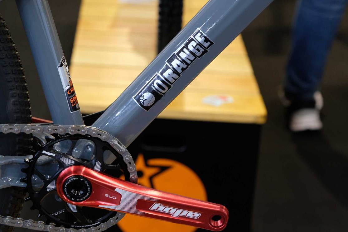 Five new bikes, that is, from a revitalised and slightly streamlined Orange Bikes. Now with presses, workshop, welding, marketing and shipping coming out of one building, it’s hoped that things are bright for Orange. Boss, Ashley Ball, was certainly upbeat (though when isn’t he?) claiming that the range of Halifax-built bikes was the best ever. I fact, the stand was awash with those big, ‘stack of coins’ welds that fans love and detractors, well don’t. The range on display was almost completely absent of its Far East hardtails, with only a steel P7 frame on the wall. Even the new Whippet jump bike is a made-in-Halifax number. I hope that this new vigour carries on to the customers too.
