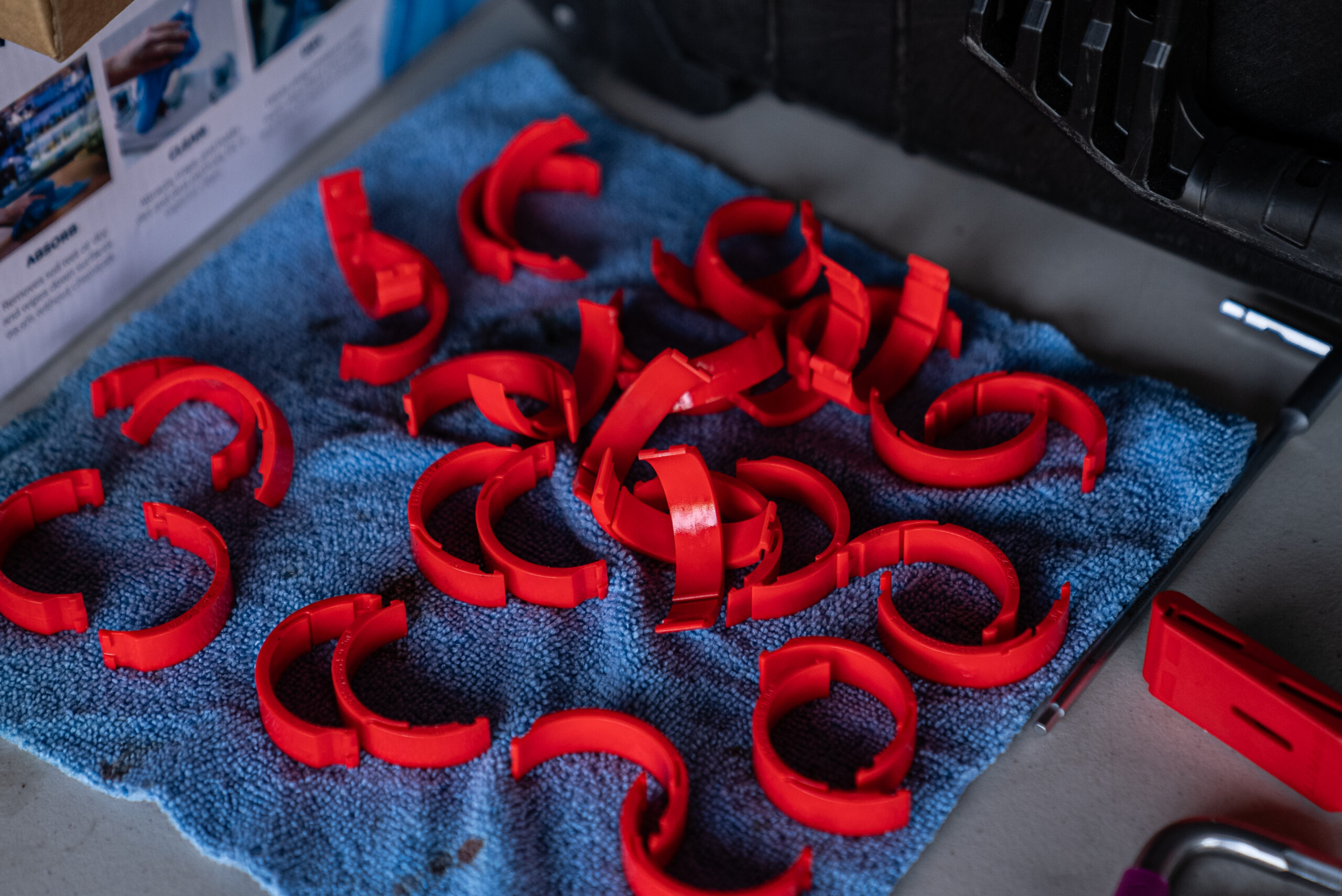 If you want the GENIE to behave like a modern large negative chamber air shock, remove the volume spacer (the bike ships with one installed) from the outer chamber. If you want maximum midstroke support, fill the outer chamber with four spacers. Or go somewhere in between. No special tools are required for volume spacer messing. You don’t even have to remove the shock from the bike.