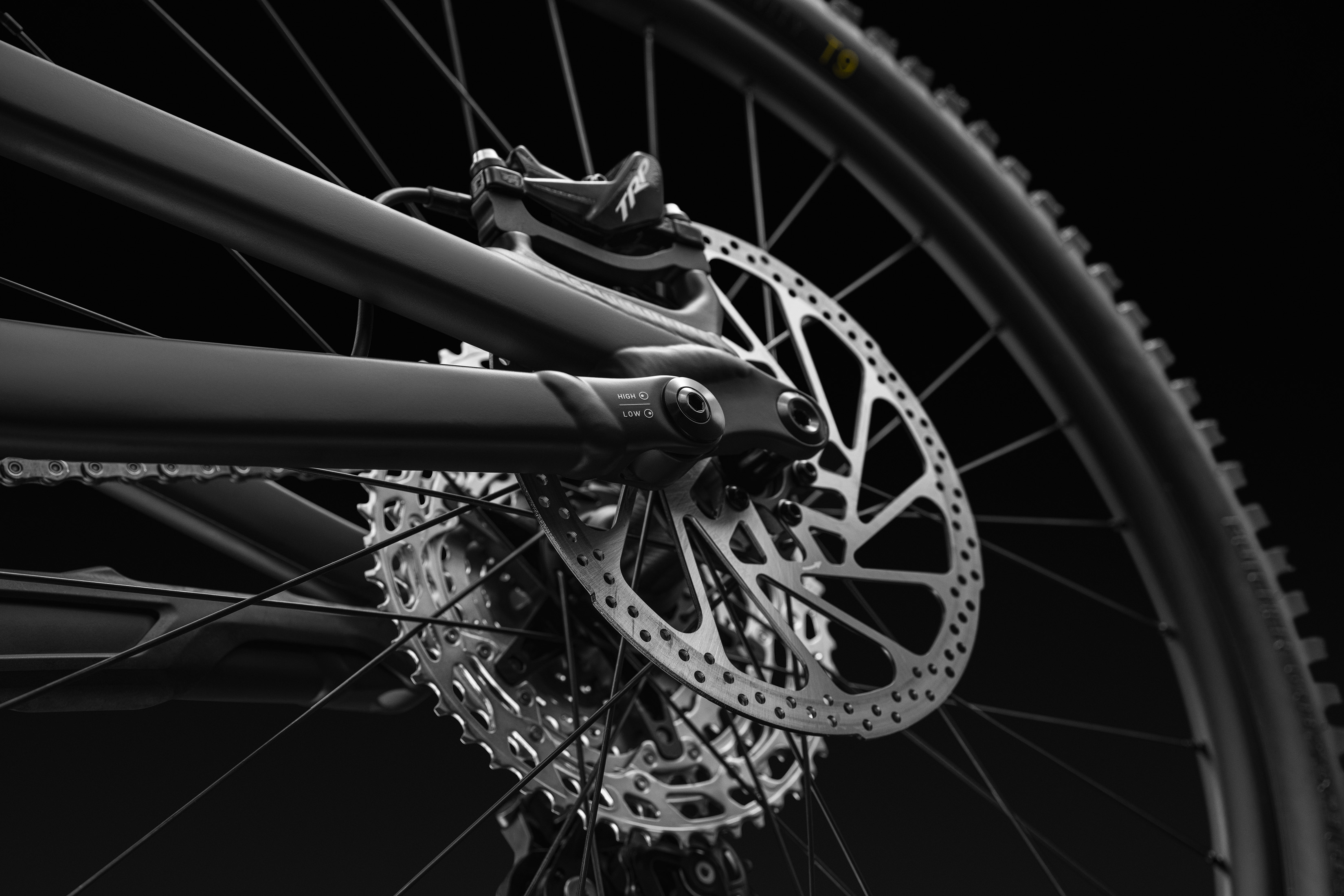 Each model of STATUS 2 bikes features neatly packaged flip chips (located on the Horst pivot link, close to the rear axle) that allow the rider to finely tune the frame’s geometry to their desired ride or terrain. Bikes ship in the high position but can be ‘flipped’ to lower and slacker—8 mm lower bottom bracket and half a degree slacker head tube angle.