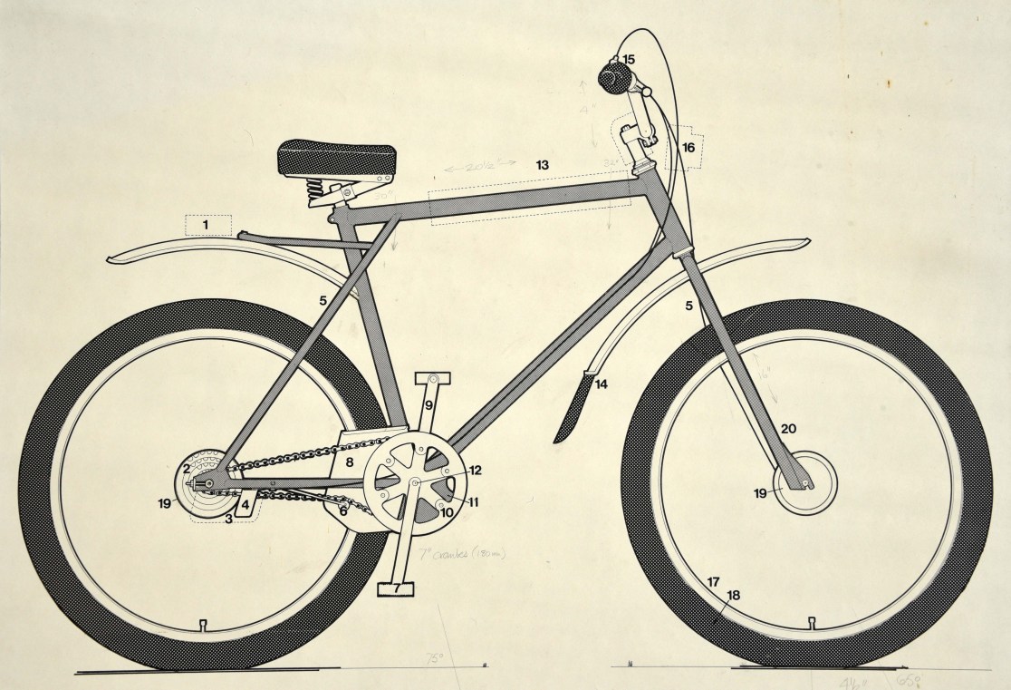 The story of Geoff Apps and his bikes could be described as someone who had the right idea at the right time but in the wrong place. This picture of the bike design he entered into a Sunday Times Bicycle of the Future competition in 1978 is what we would today describe as a mountain bike. However, Geoff arrived at the design independently without any knowledge of what was about to happen in Marin California. Had the judges foreseen that the many children enjoying cycling off-road would want to continue to do so as adults, and not dismissed his design as a pedal powered off-road scrambler motorbike’, the history of the off-bicycles could have turned out in Geoff’s favour.