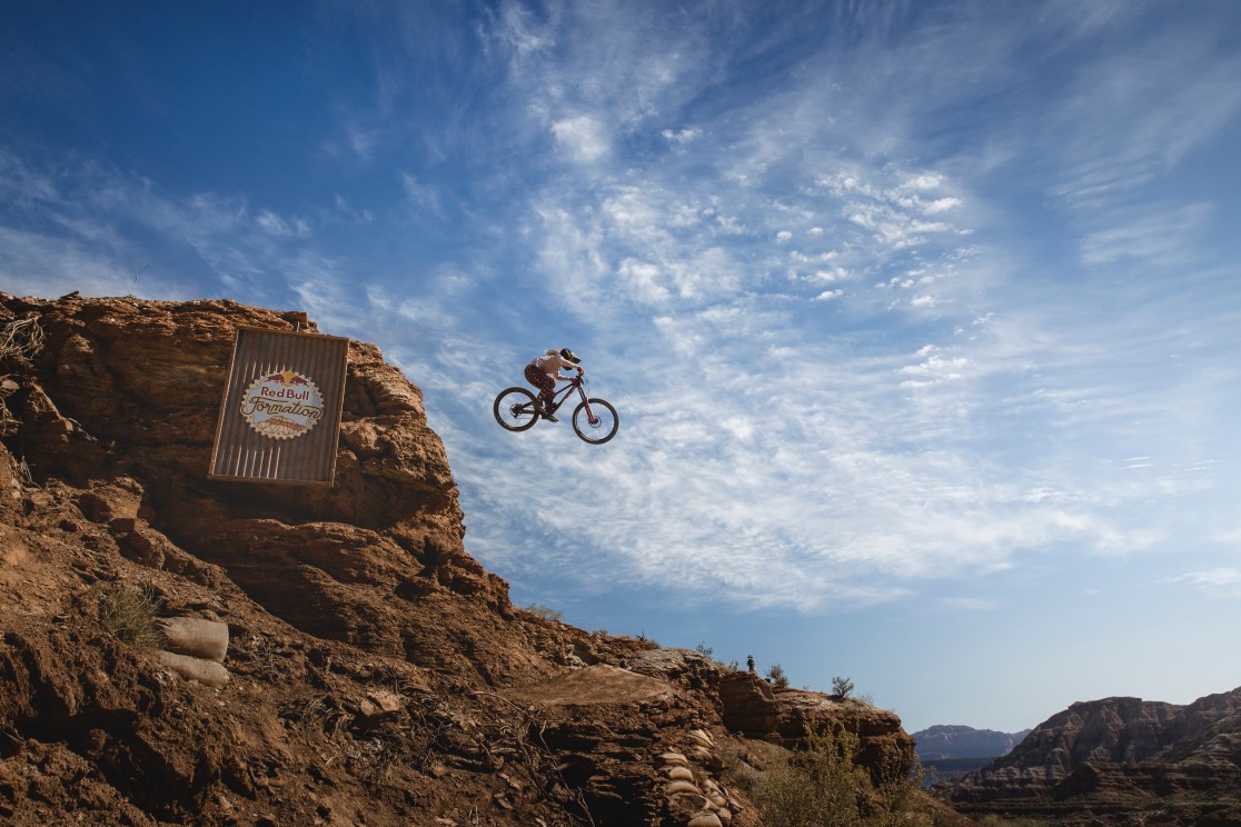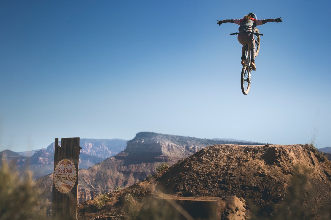 Robin Goomes riding her triple drop, in Utah, USA on May 14, 2022 // Robin O’Neill / Red Bull Content Pool /