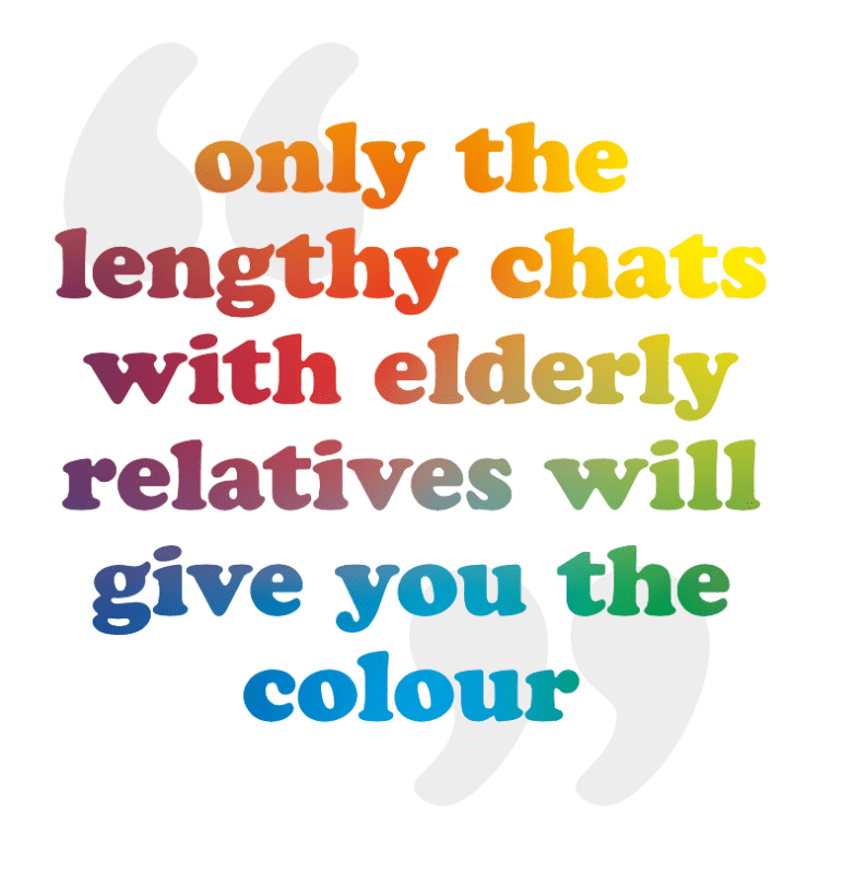 If you’ve ever done your family tree, you’ll know there are two ways to do it. You can sit down with the oldest relatives you have, maybe some photo albums, and get them to tell you all about all the people they remember, and all the people they remember being told about. Or – and maybe as well as – you can painstakingly trawl through records of births and deaths. This second way will involve hours of rooting through archives, and perhaps even through overgrown graveyards and old church records. Both may eventually draw your family tree back to the Domesday book, or the Mayflower, or whatever, but only the lengthy chats with elderly relatives will give you the colour. Maybe you do a real deep dive into the depths of paper archives and find some court records, or sale of a business, and discover that not only was Great-Great-Great Uncle John married to Betty, but he was also a greengrocer who was fined for fiddling his scales. But, probably you just end up with a bunch of names. You don’t know that John and Betty fell out with Cousin Harold because he always ate the last slice of bread. Or that Great-Great Aunt Mildred always wore a bonnet in photographs to cover the fact she only had one ear after a childhood accident.