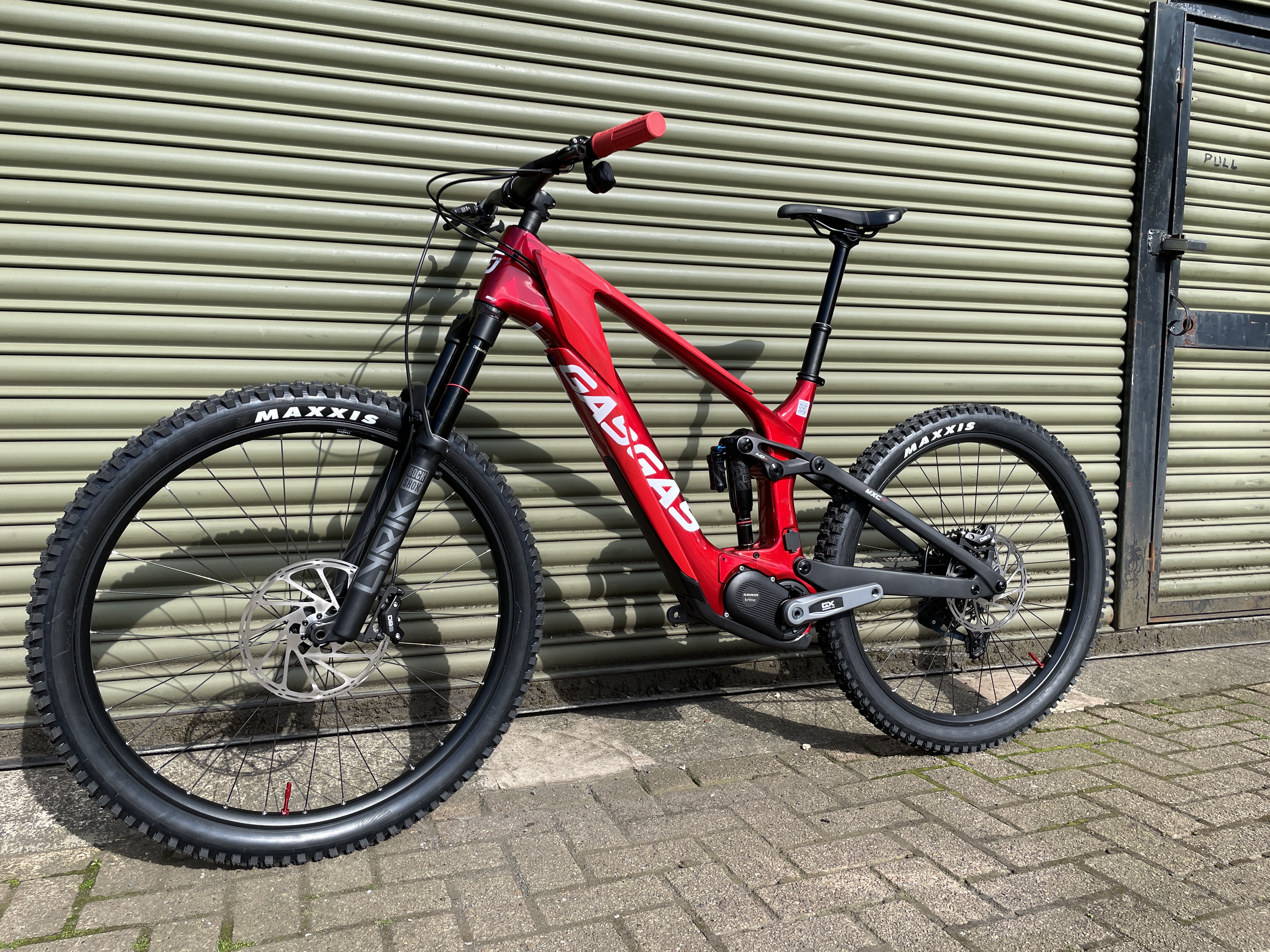 From the Spanish makers of motorbikes, we have this 160mm Lyrik Select+ fork, 140mm Deluxe Select+ shocked ebike. Mullet wheels, carbon front triangle, size specific rear triangle, and SRAM Eagle Powertrain drive unit with 630Wh battery. Unusually (and a pleasant change?) for us journos, this is the bottom of the range model rather than the super bling. So it doesn’t have the electronic shifting that the other models have – which should actually be kind of interesting to test out the SRAM motor without the extra add-ons you get from the electronic shifting. Harking to its moto roots, you get removable frame protection/farings, and like everything else from GASGAS, the bike comes in red. But, they’ve got a team in conjunction with Troy Lee, so future wild aftermarket faring options seems like a safe bet.