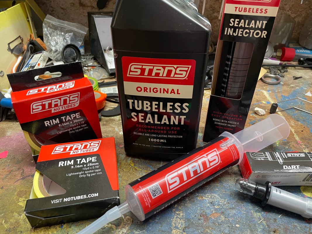 Once you start, you can’t stop, right? We’re talking about once you start looking inside your tyres to see how much tubeless fluid remains. ‘None’ is always the answer – and rather than try to re-use the half-cup of greyish fluid from the last time you did your tyres, it’s always good to get the fresh stuff in there. The Stan’s injectors are new to us, though, as are the Dart tools, so we’ll let you know how we get on.