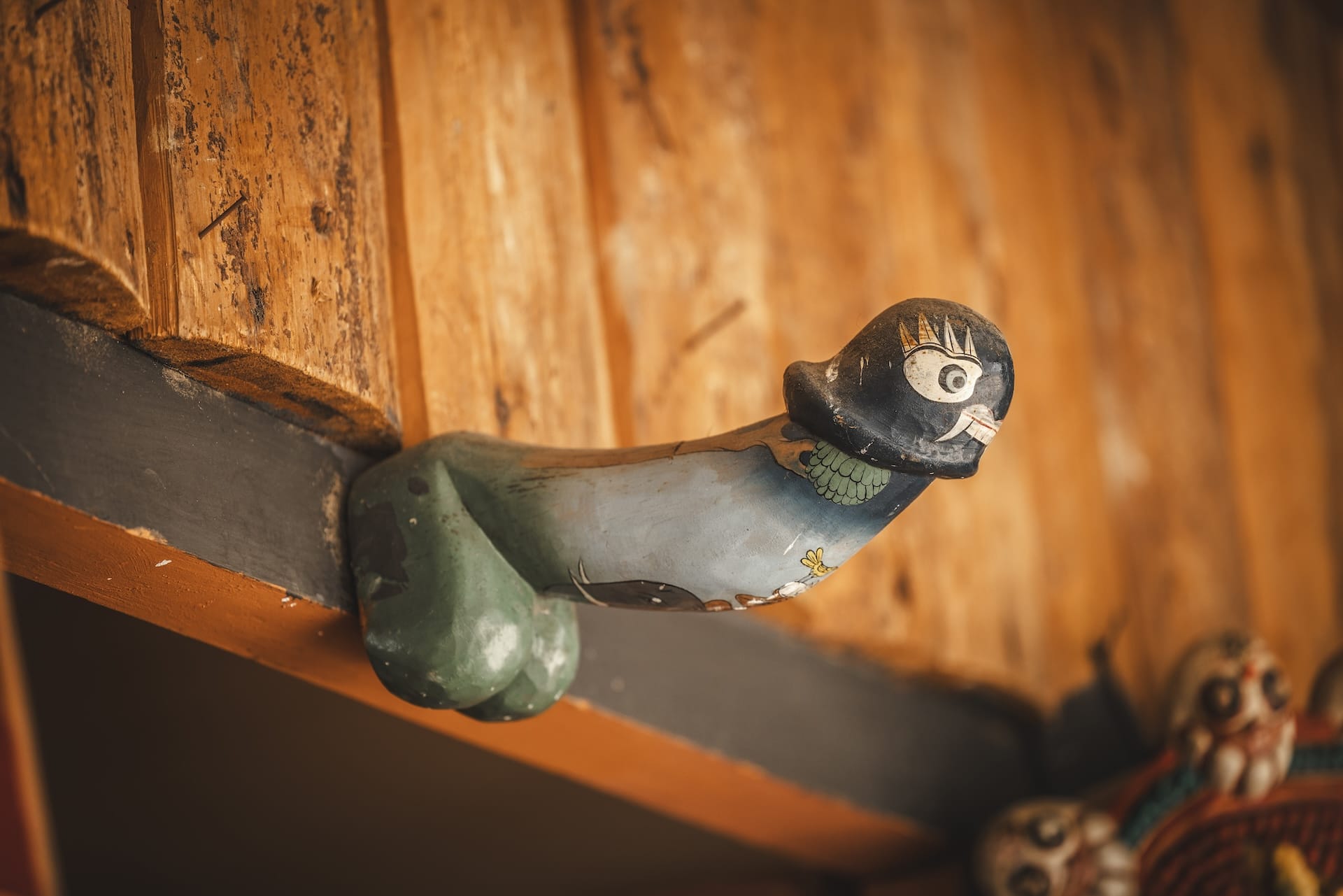 We cross the main road several times and reach a small village. Suddenly, there’s more activity. Minibuses with Indian tourists line up in a parking lot. A group of giggling Asian women pose in front of a house, taking photos. Tandin says it’s time to tell us the story of the Madman. Legend has it that 500 years ago a holy monk defeated a demon with his best part. Since then, phallic symbols have been painted on buildings or carved and hung at entrances to ward off evil spirits. It’s now known that penises not only drive away demons but also attract tourists.