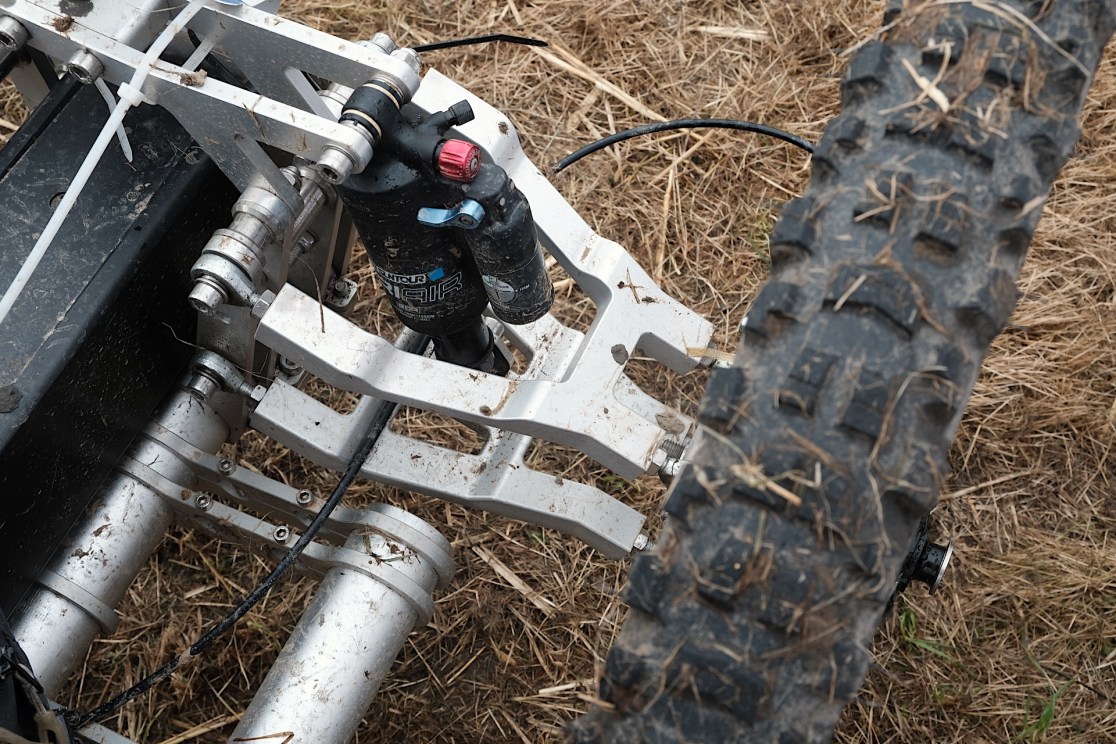 I found a company that were willing to execute on some of those ideas and I got that bike built and I went out and subsequently kept breaking that. One day I was out and I hit like a little triple, landed really hard on the rear and broke a carbon a-arm on it, and they told me it was going to be ridiculous money and a long time to get that part replaced. I went home that night and I got onto the computer, into CAD, and I redesigned the same part in a couple of hours. I had four of those units made – for half the price they were quoting me – from aluminium and I had them in two weeks.