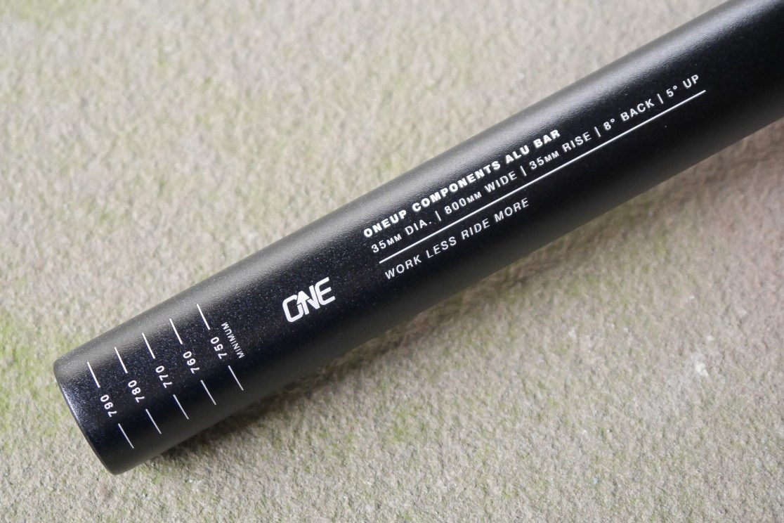 The OneUp 7050-T6 aluminium bar has the same ovalised shape as its carbon bars but at a lower price. Stats: 800mm wide, 5°, upsweep, 8° backsweep. A tried and tested recipe. The USP of the bars is the increased damping and compliance through the use of that ovalised profile. Does it work? Yes, it does. The bars are the comfiest I have used. Based on ride feel, they are up there with the best. They take the sting out of rough trails without ever feeling like there is any loss of accuracy. When out of the saddle and yanking on the bars there is no noticeable flex, yet they add a muted level to trails and remove a lot of vibration. A lot of test bikes come with overly stiff (carbon) bars so I often swap them for something more comfortable. These OneUp bars have now become my control set. I’d happily run them on all the bikes I ride and test.