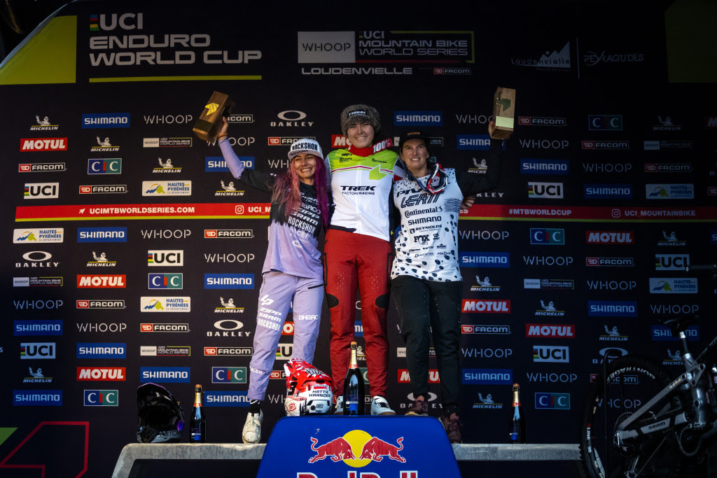 Almost 20-seconds up on Courdurier, the destination of the overall series had been settled – the pair ultimately separated by only 21 points. On the day, it was Charre who would come out on top for her second UCI Enduro World Cup win of the season, while the Frenchwoman leapfrogged Ella Conolly into third in the overall.