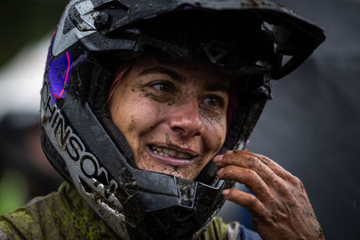 It was Harnden who got the early upper hand over her rival, winning the wet and sloppy 2.715km opening stage. But Courdurier wasn’t far behind the Brit – finishing third behind Ella Conolly on the stage, with a 17-second gap possible to reel in when the conditions are this difficult.