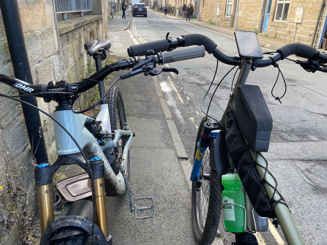 That’s Benji’s test bike form Orbea, side by side with James’ Cascade – the bars are basically at the same height. So perhaps James isn’t quite so crazy?