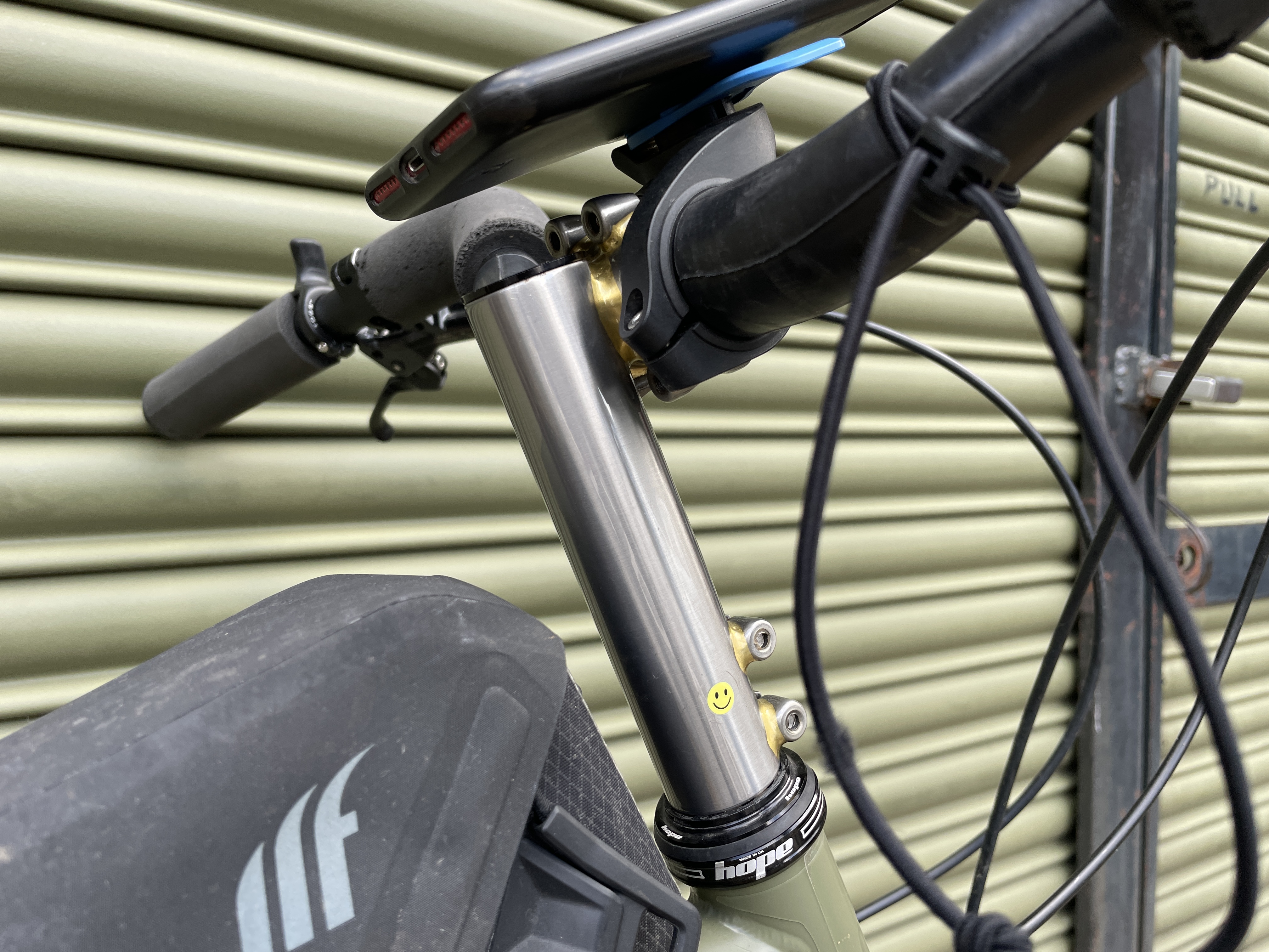 Don’t get all funny, but James has a tan wall tyre at the back and a black wall up front. Both looking like they’ve put the miles in now, on Hope hoops.