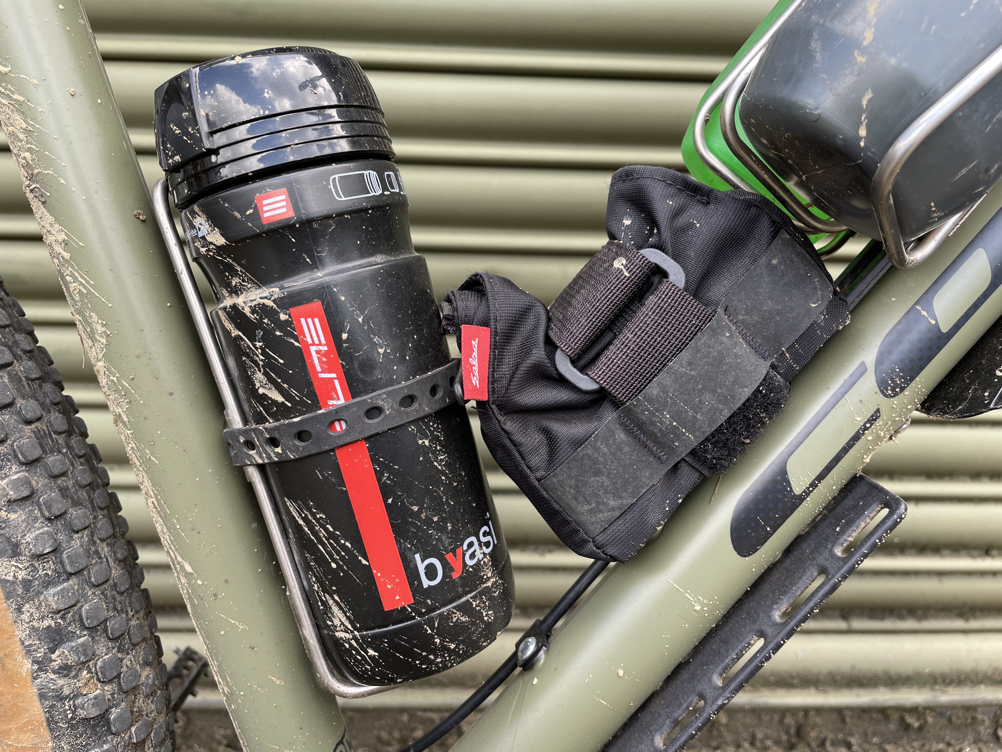 Spares are carefully stowed on the bike too, and there’s space on the downtube for more luggage if needed.