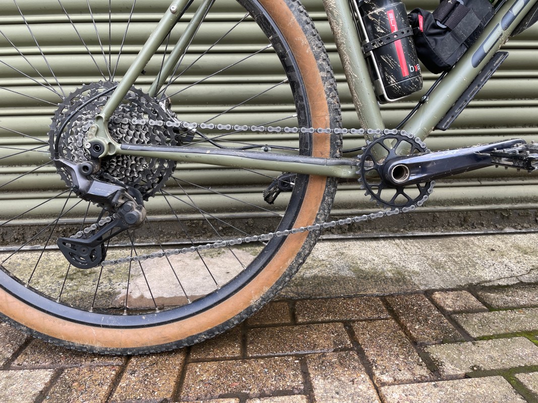 A Shimano Deore XT groupset for covering the miles, putting up with the commute, and stopping when needed, with oval chainring upgrade.