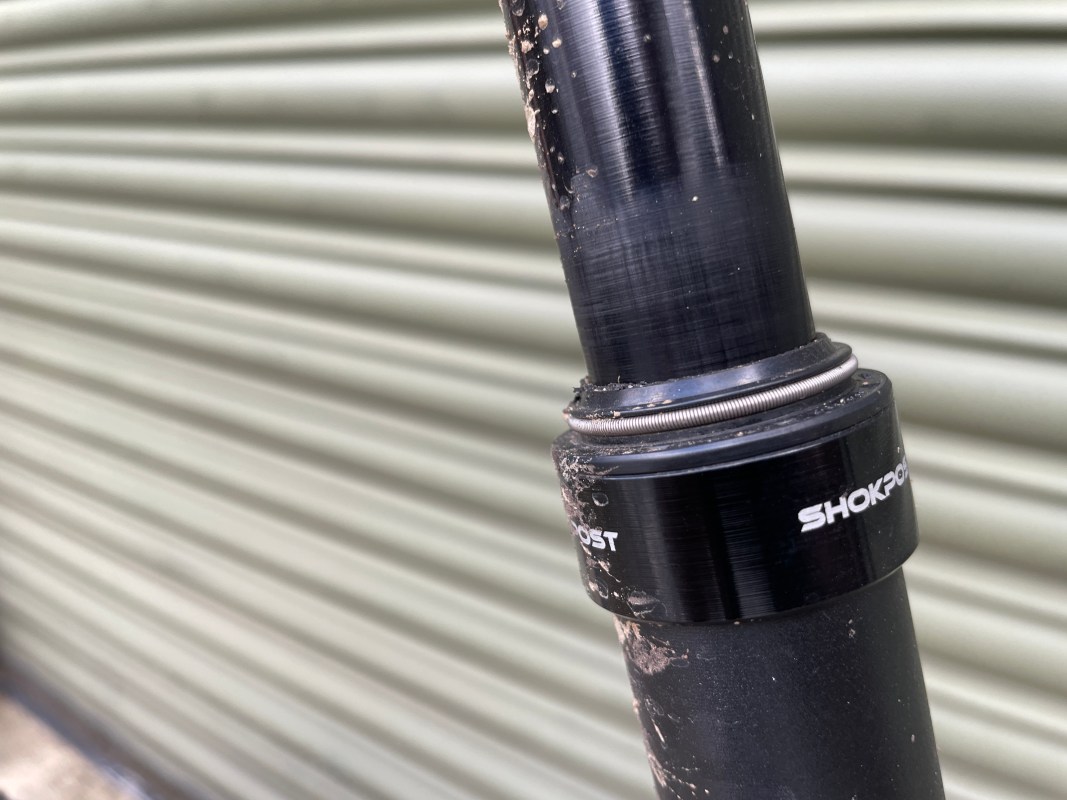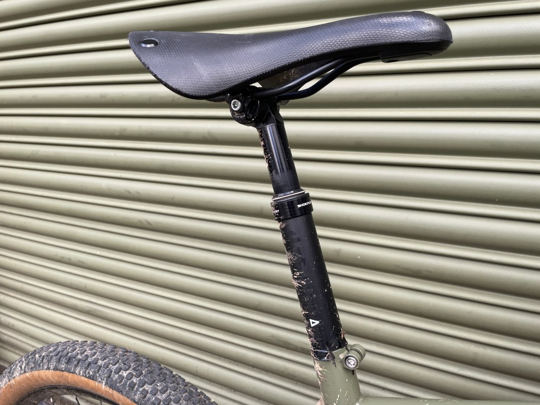 This is no dropper – it’s a suspension seatpost from USE, plus a Brooks saddle. A little bit of cush for James’ tush.