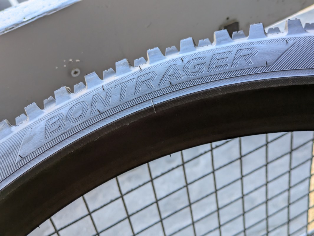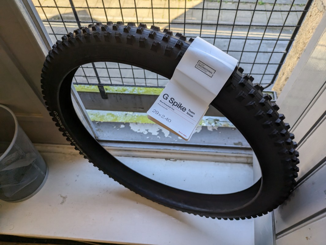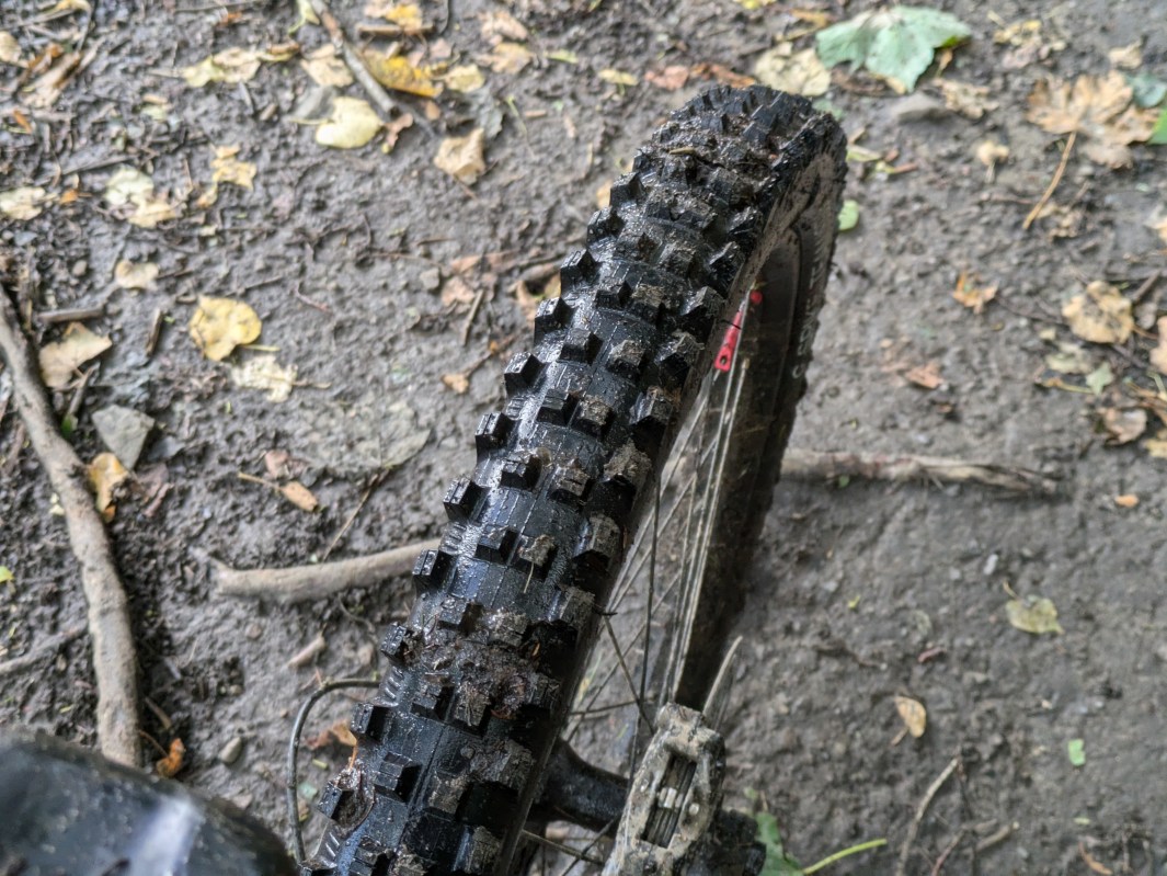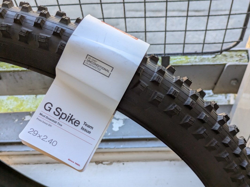 ‘Tis the season. The Season Of Spike. Mud spike tyres that is. Not all folk’s terrain/riding is suited to spikes but if your muck is wet and soft and steep and camber, spikes are a joy. These specific tyres we have here, were requested after Trek’s racing performances at the recent Loudenvielle enduro and downhill mudbaths. Hattie Harnden and Reece Wilson respectively put down great performances and both were seemingly running Bontrager G-Spikes. As with a lot of spikes they’re relatively tall casing but they’re not as narrow as, say, a Maxxis Wet Scream. The G-Spikes kinda look like a Spoecialized Hillbilly (or Maxxis High Roller 3?) on steroids. Not light. Not subtle. Laugh out loud capable though.
